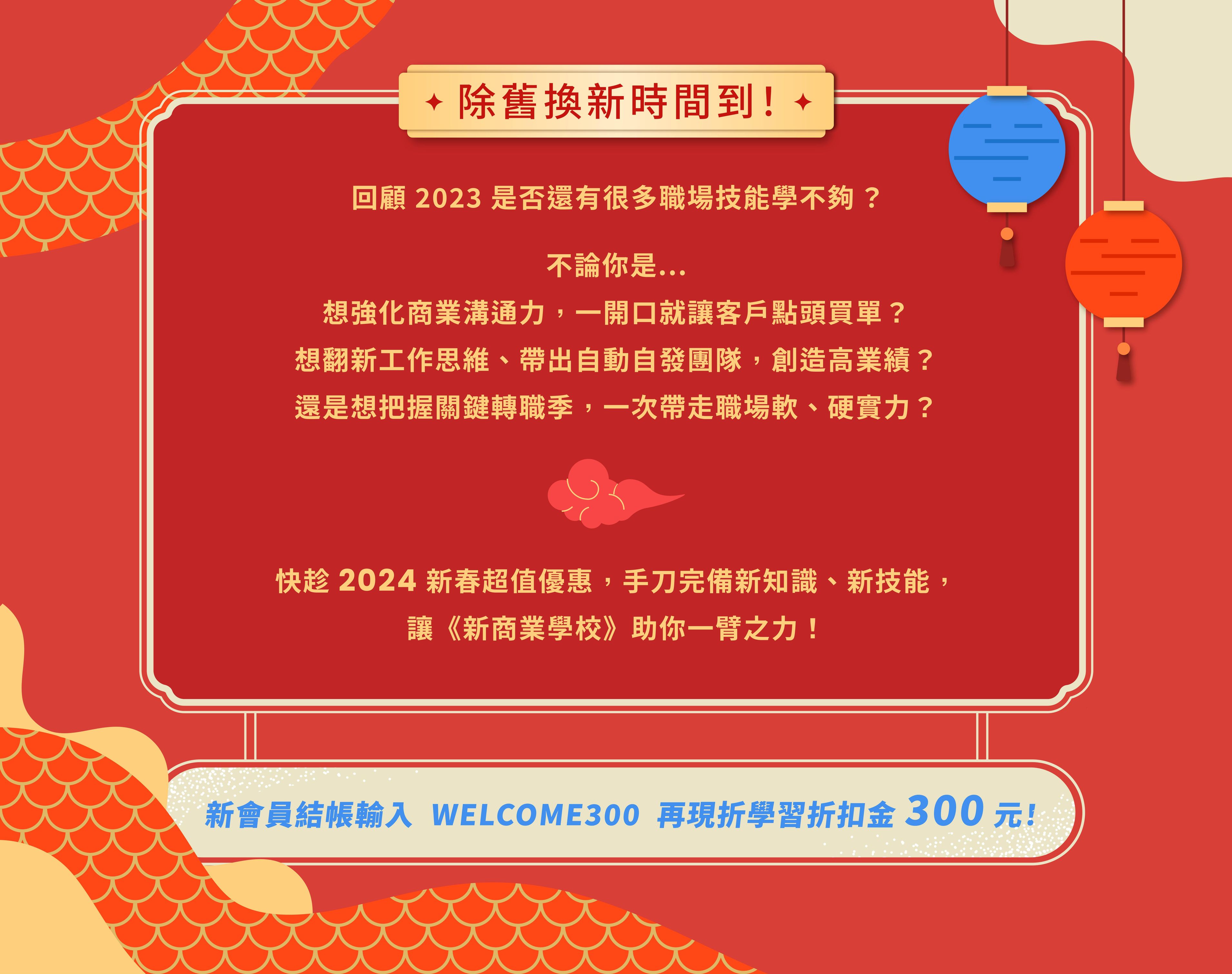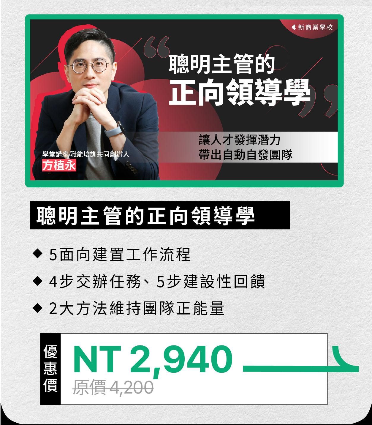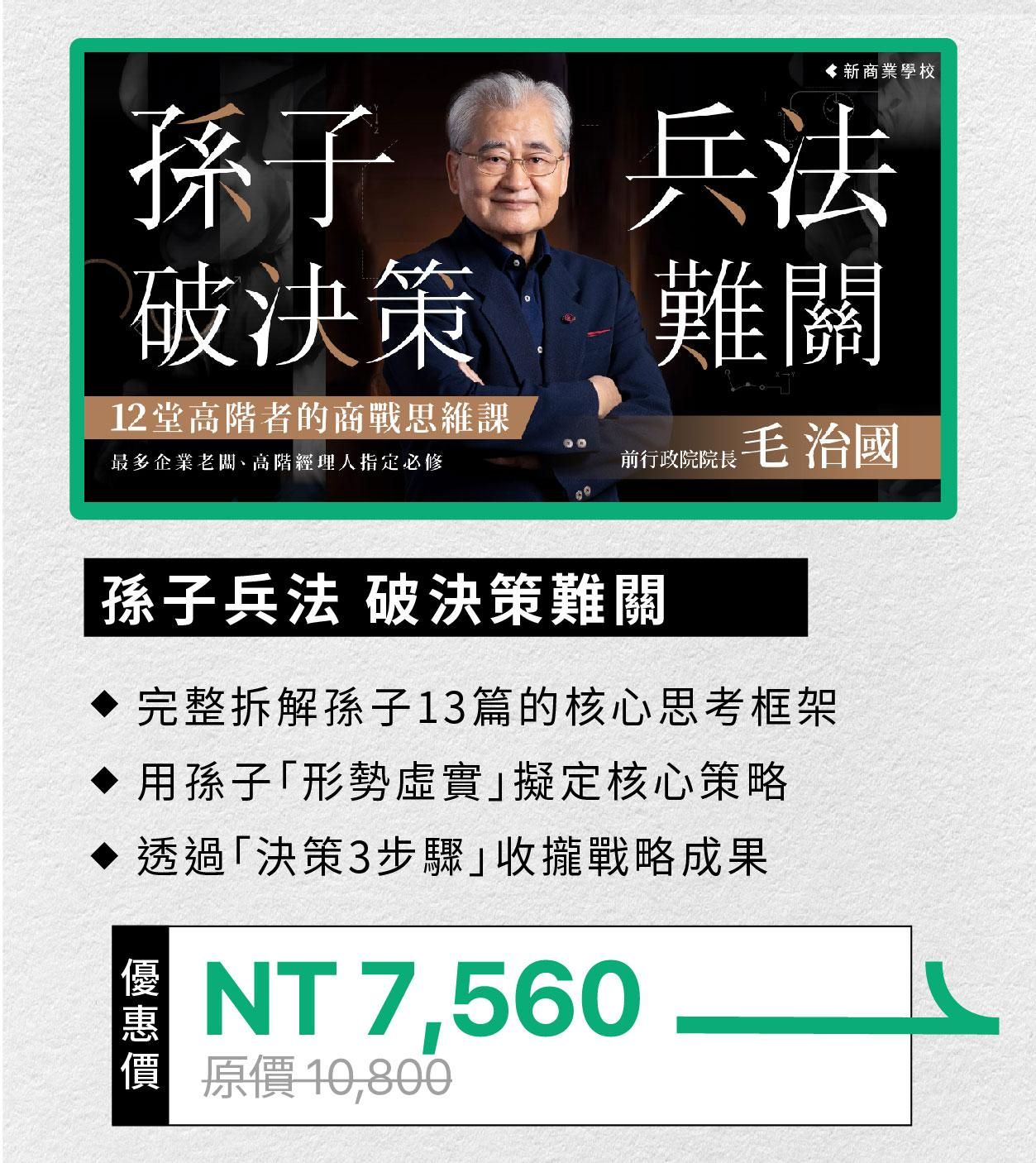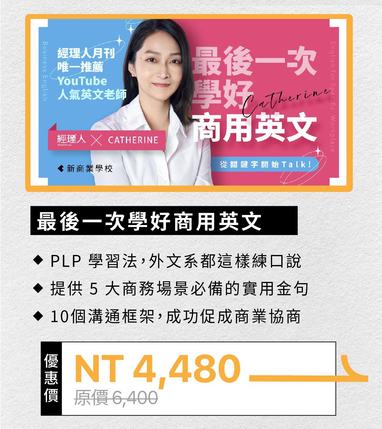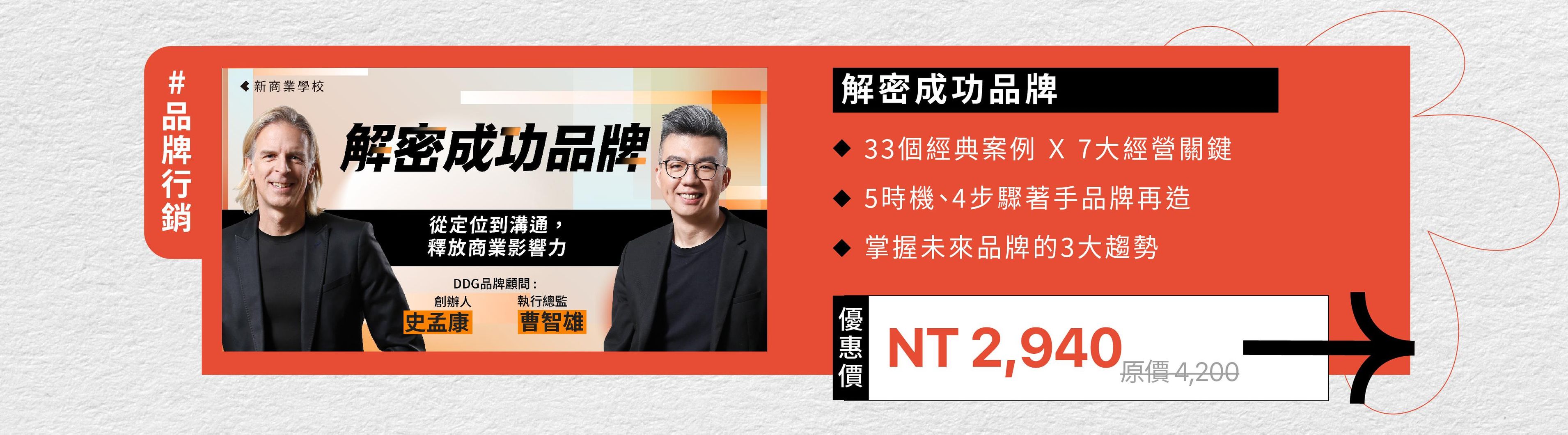 注意事項: ・ 活動期間為2023/11/8 (三) 至 2023/12/05(二) 23:59 止。 ・「雙11狂歡 7 折」方案於訂購付款完成後,即可開始課程。 ・加購《一次搞懂 ChatGPT 工作法》方案為特殊優惠不適用學習折扣金。 ・ 本活動新商業學校保留變更、修改、終止之權力,若有變更將依活動頁公告為準。 ・ 如有任何問題請來信新商業學校 online-course@bnext.com.tw