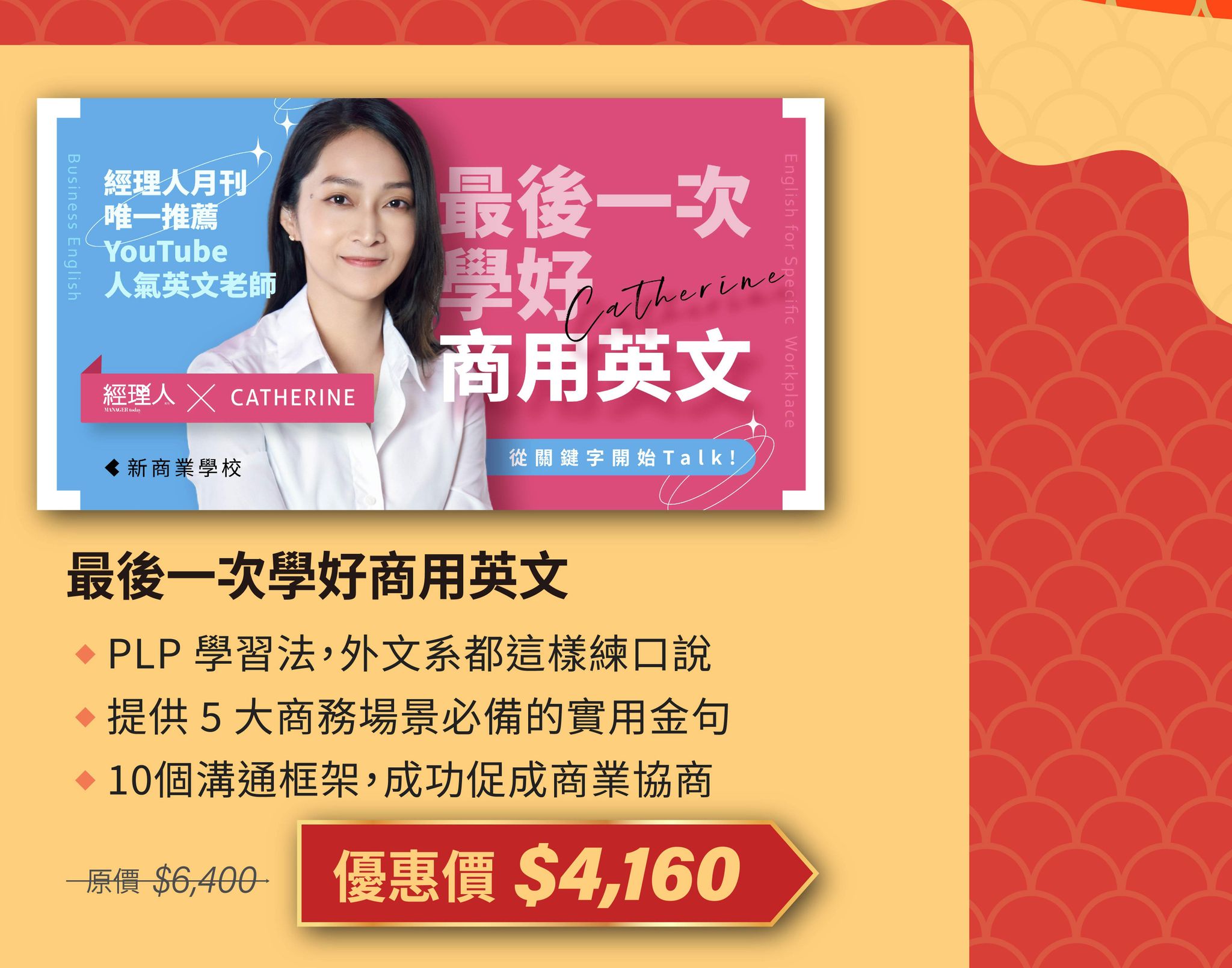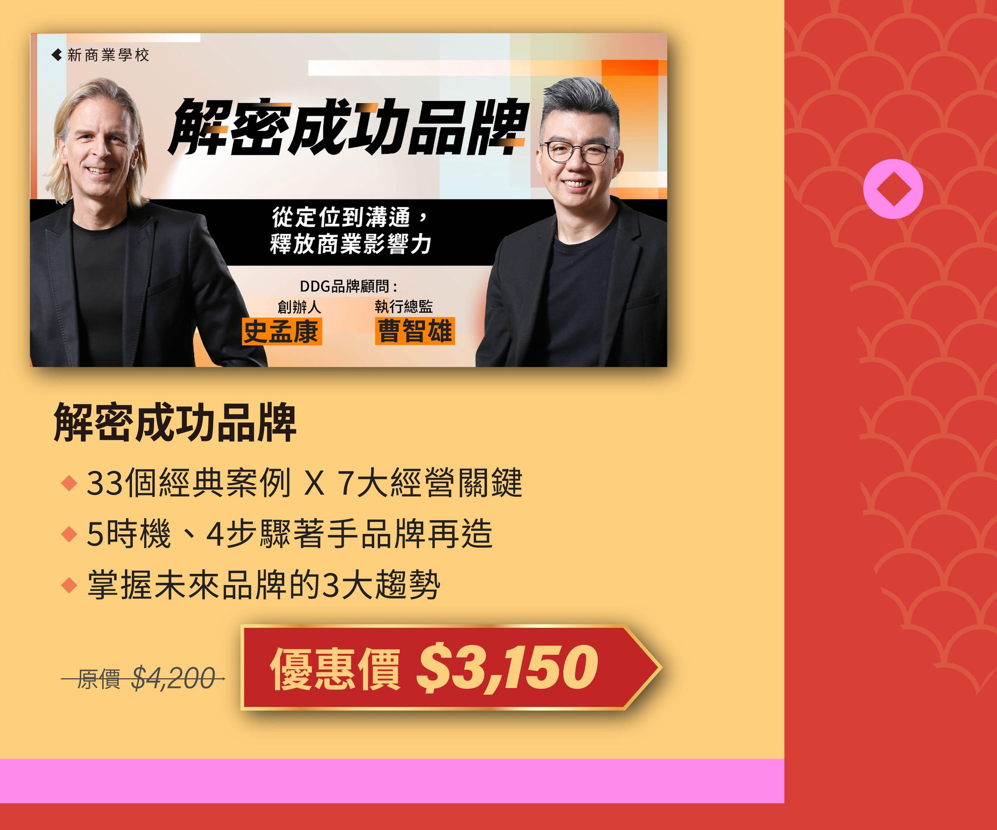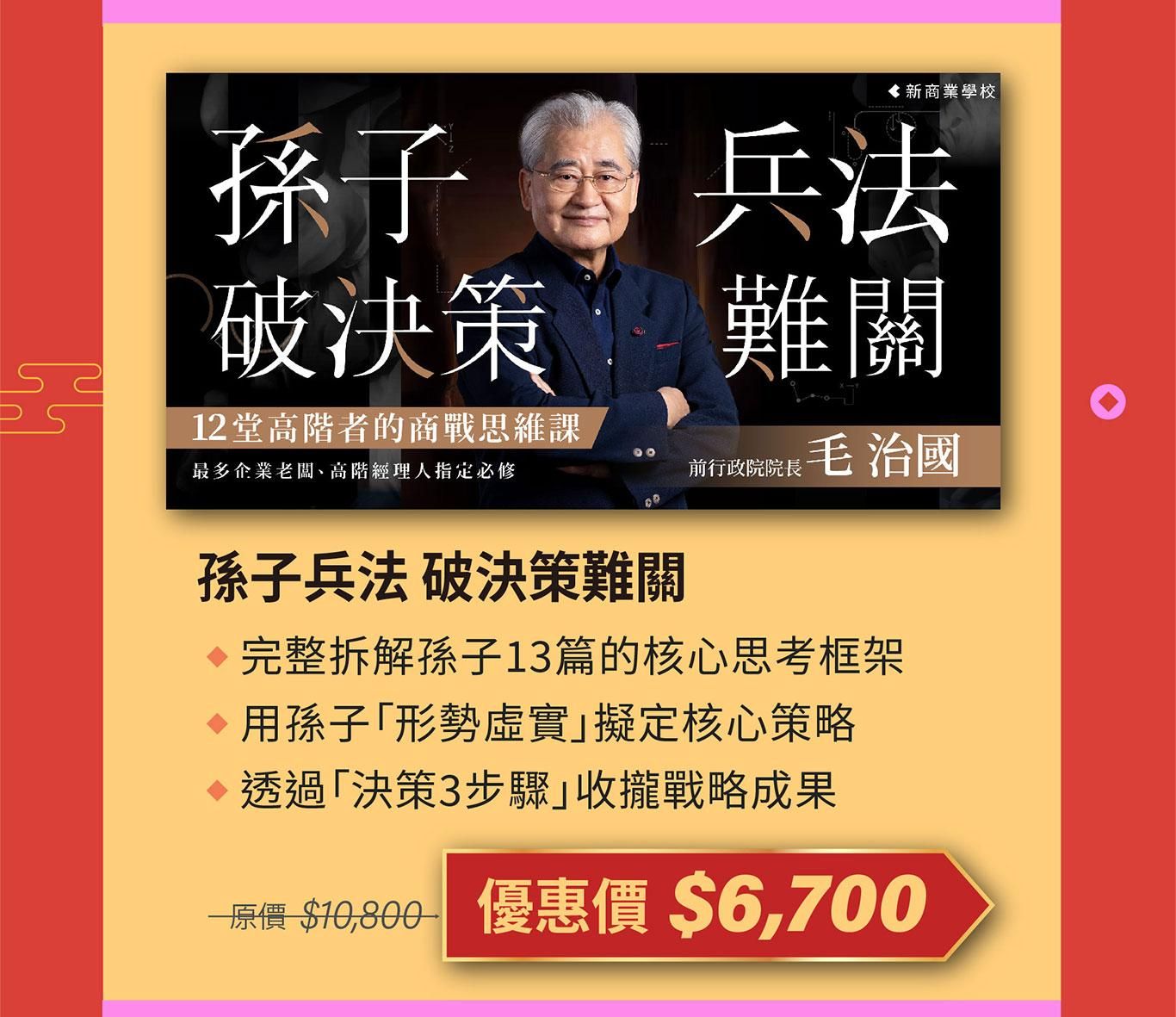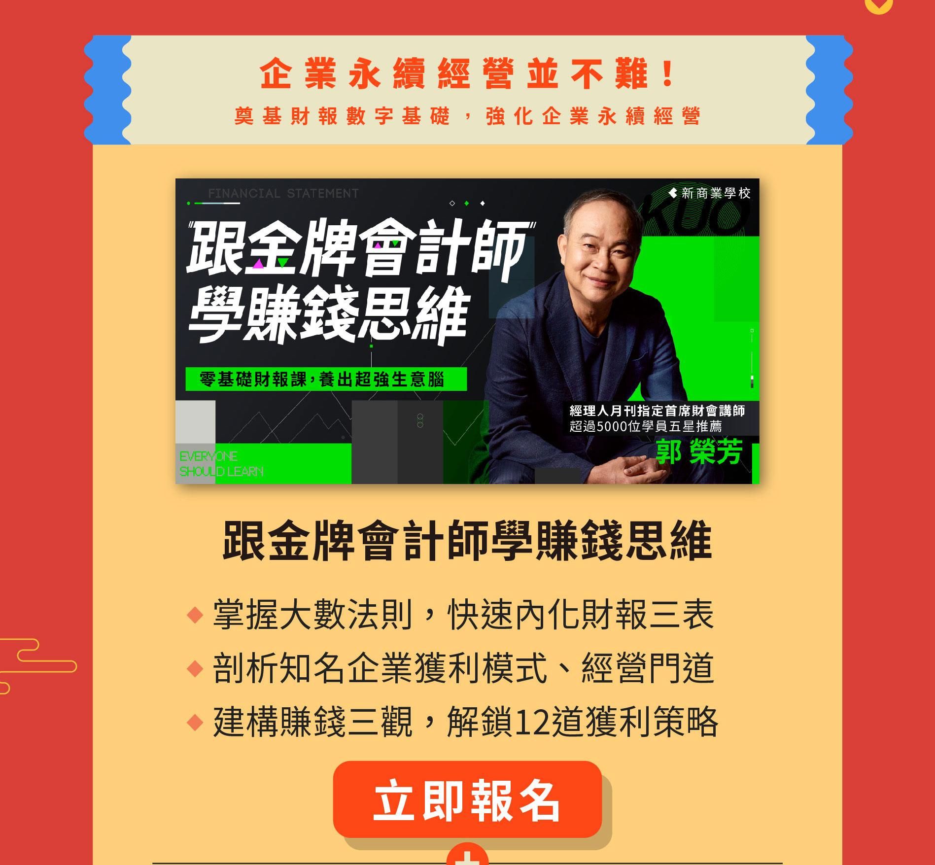 注意事項: ・ 活動期間為2024/1/22 (一) 至 2024/2/16 (五) 23:59 止。 ・ 新春案型於訂購付款完成後,除了《GA4 新手完全攻略!2024 全面升級版》將於3/26 (二) 正式開課,其他即可開始課程。 ・ 本活動新商業學校保留變更、修改、終止之權力,若有變更將依活動頁公告為準。 ・ 如有任何問題請來信新商業學校 online-course@bnext.com.tw