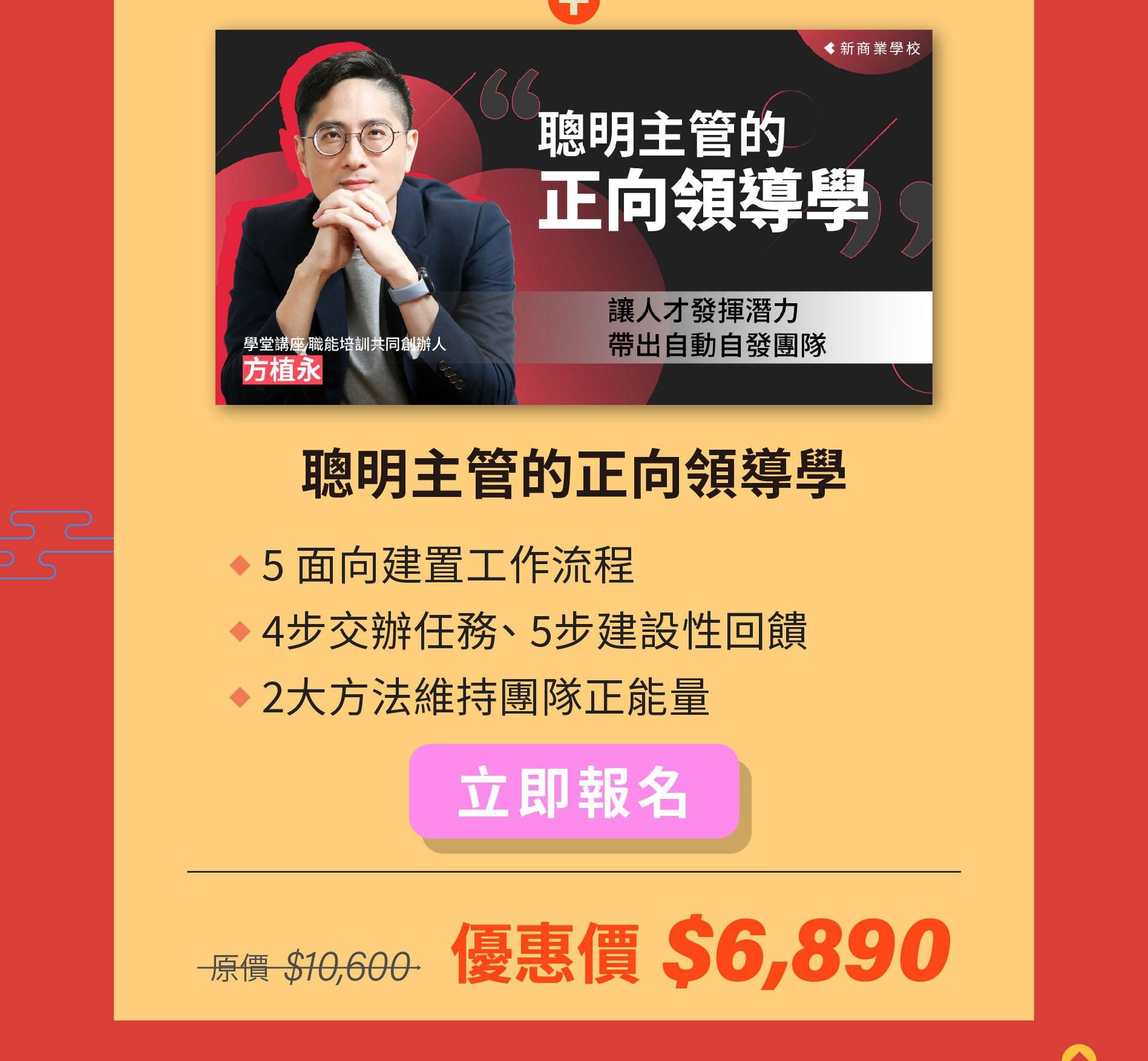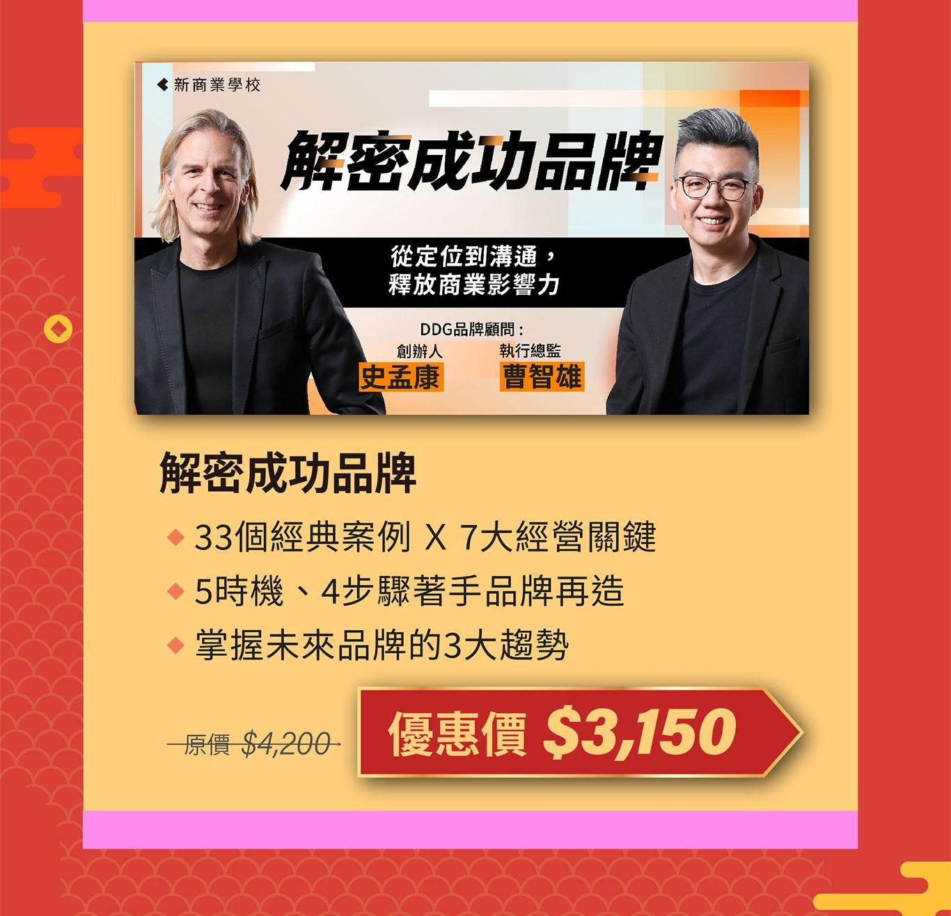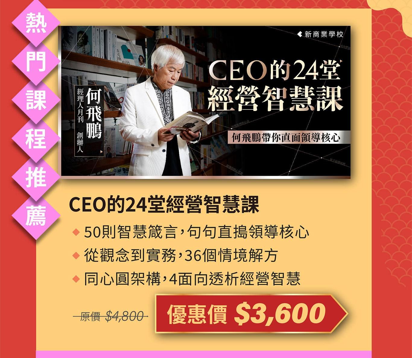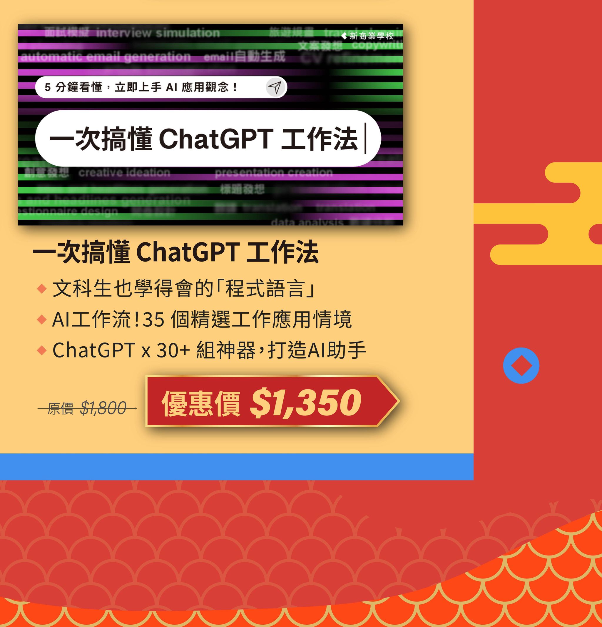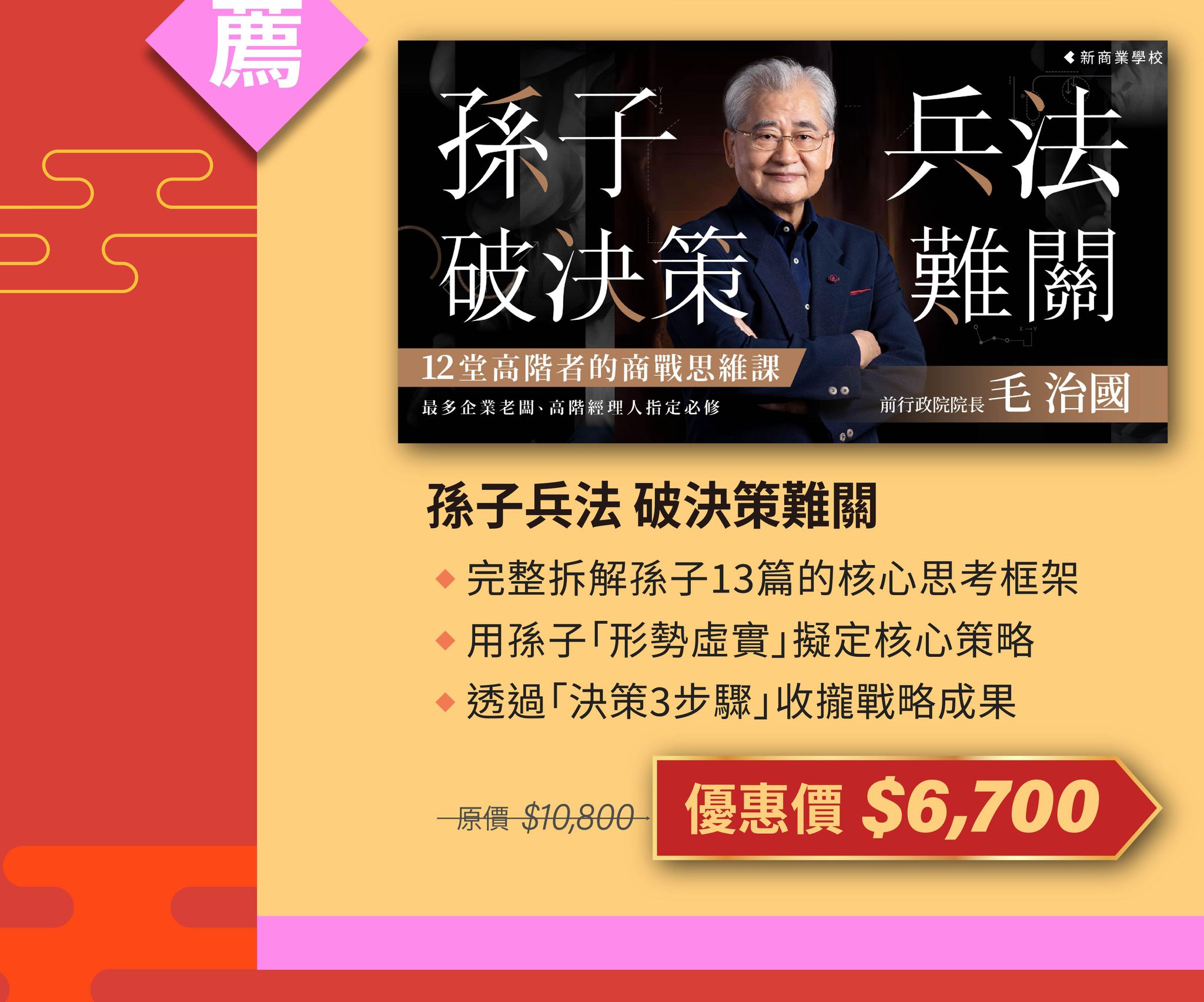 注意事項: ・ 活動期間為2024/1/22 (一) 至 2024/2/16 (五) 23:59 止。 ・ 新春案型於訂購付款完成後,除了《GA4 新手完全攻略!2024 全面升級版》將於3/26 (二) 正式開課,其他即可開始課程。 ・ 本活動新商業學校保留變更、修改、終止之權力,若有變更將依活動頁公告為準。 ・ 如有任何問題請來信新商業學校 online-course@bnext.com.tw