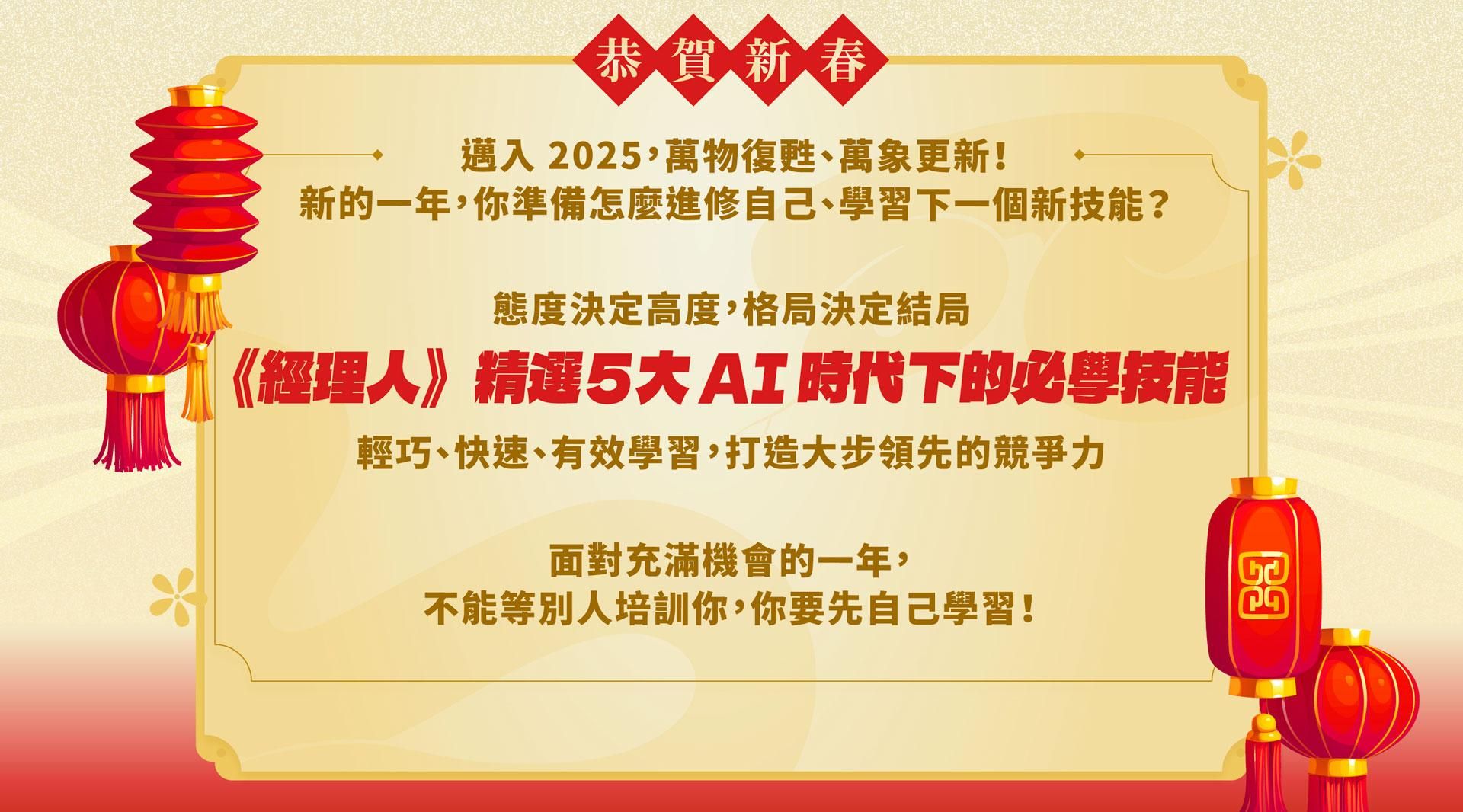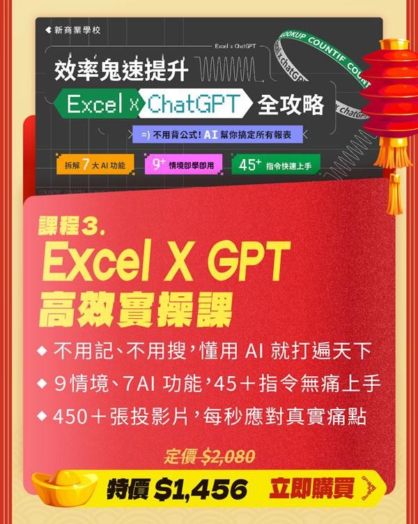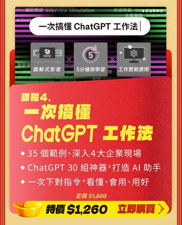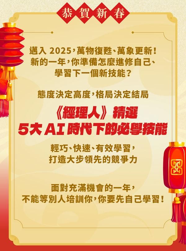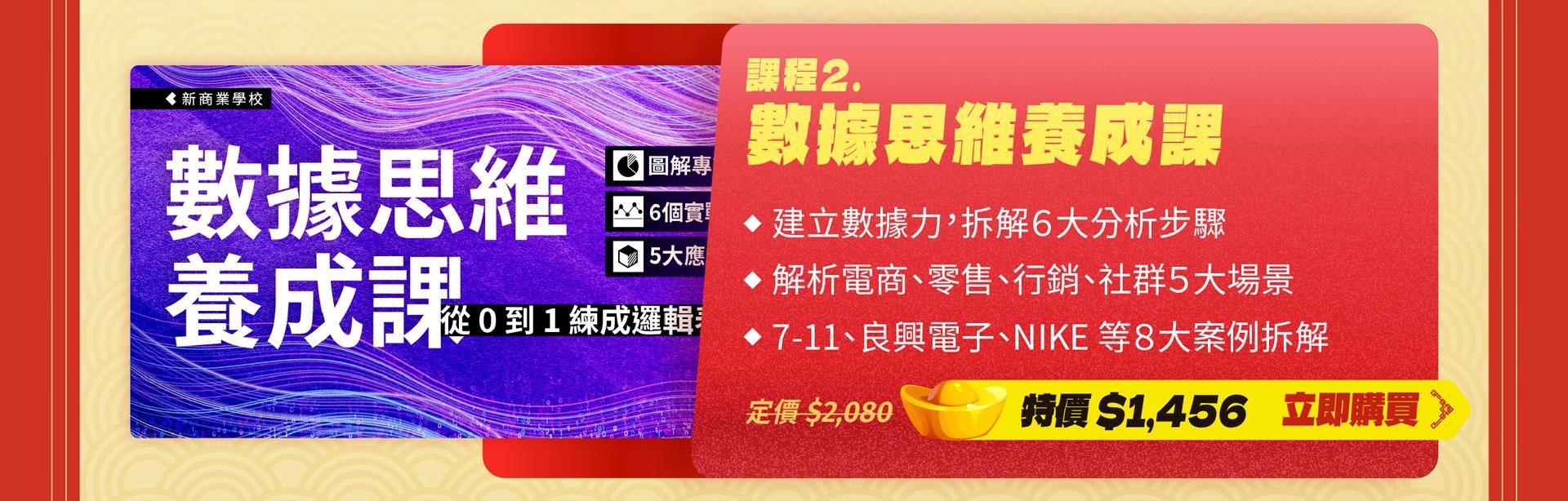 注意事項: ・ 活動期間為2024/1/13 (一) 至 2024/2/28 (五) 23:59 止。 ・ 新春案型於訂購付款完成後,即可開始課程。 ・ 本活動新商業學校保留變更、修改、終止之權力,若有變更將依活動頁公告為準。 ・ 如有任何問題請來信新商業學校 online-course@bnext.com.tw