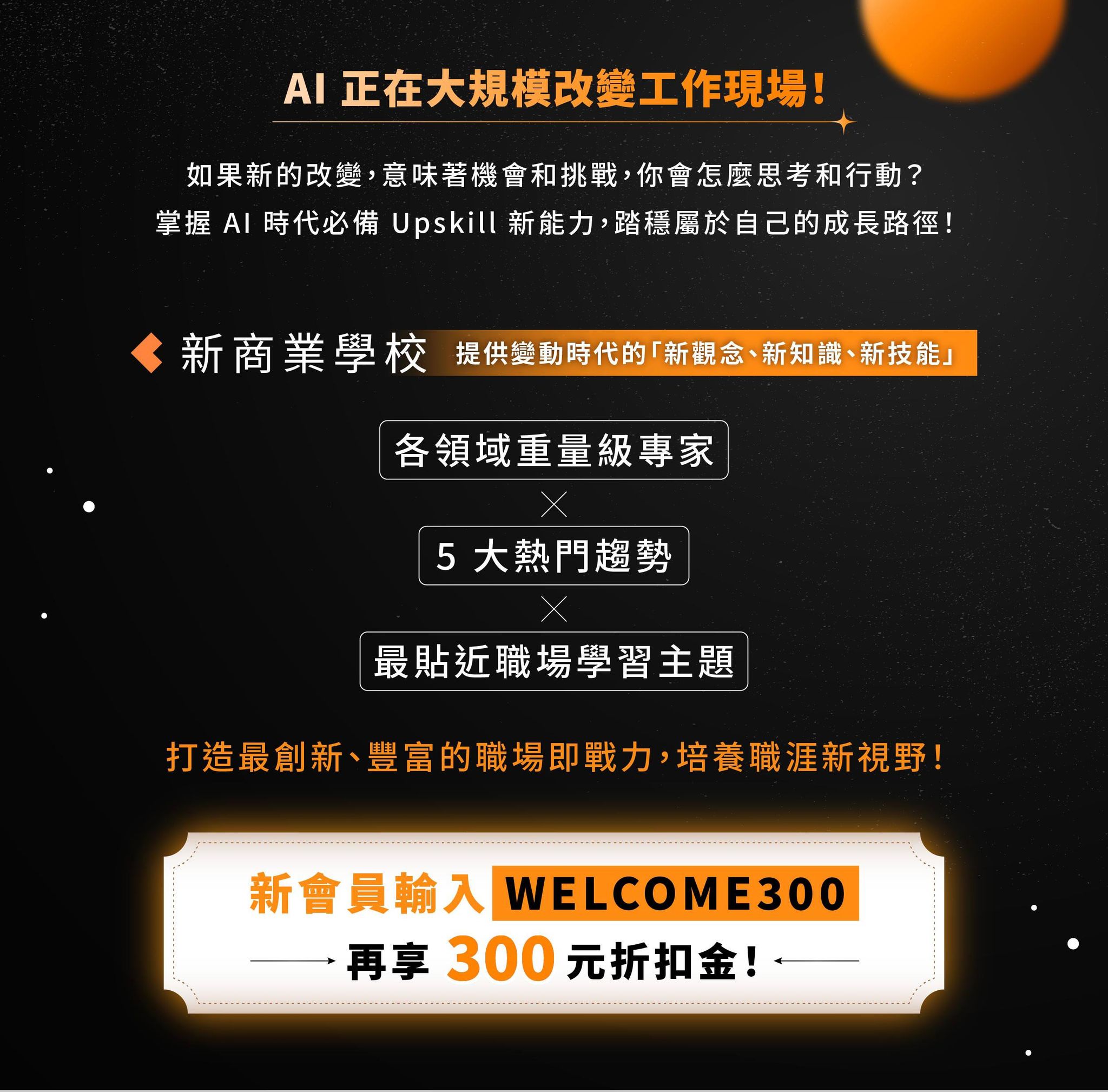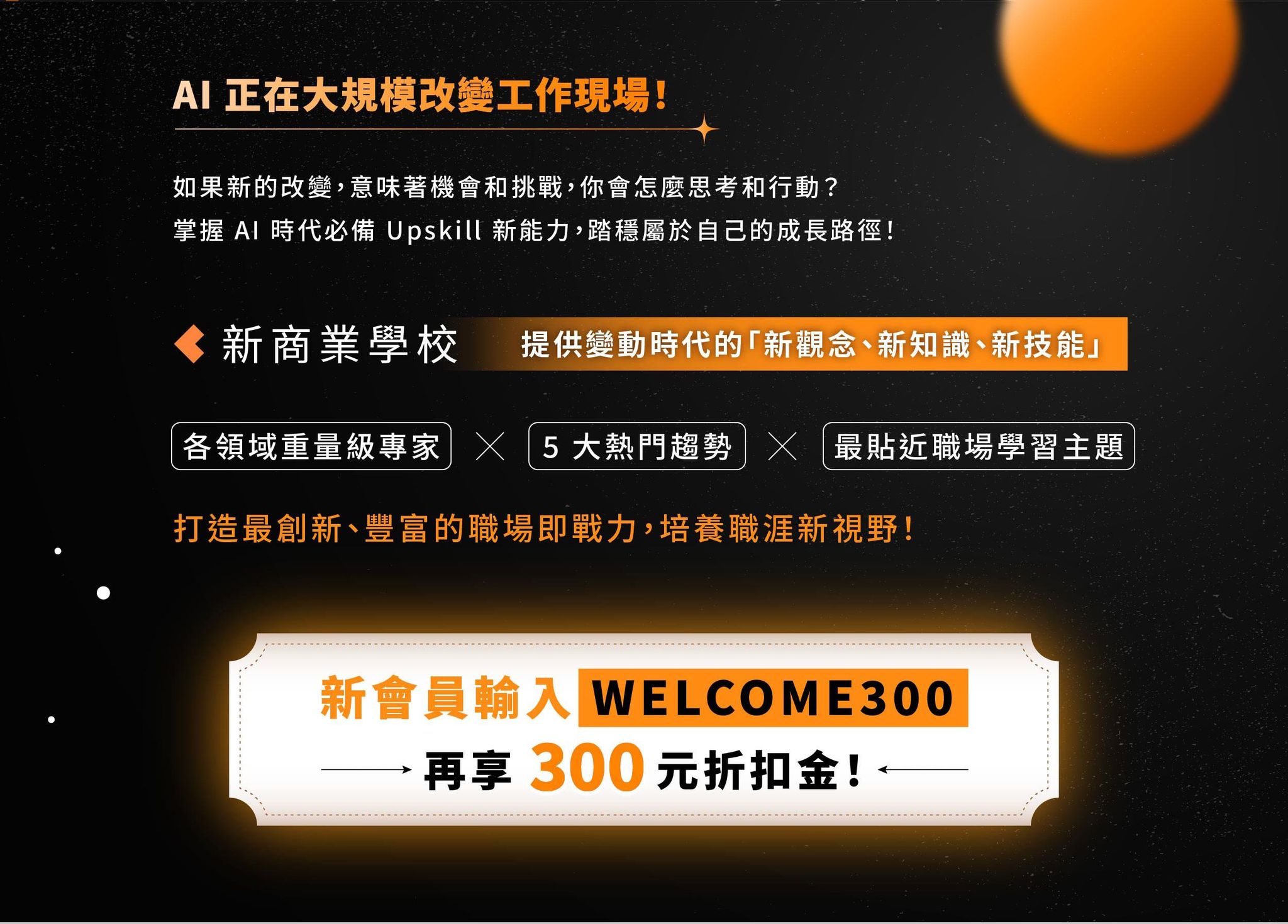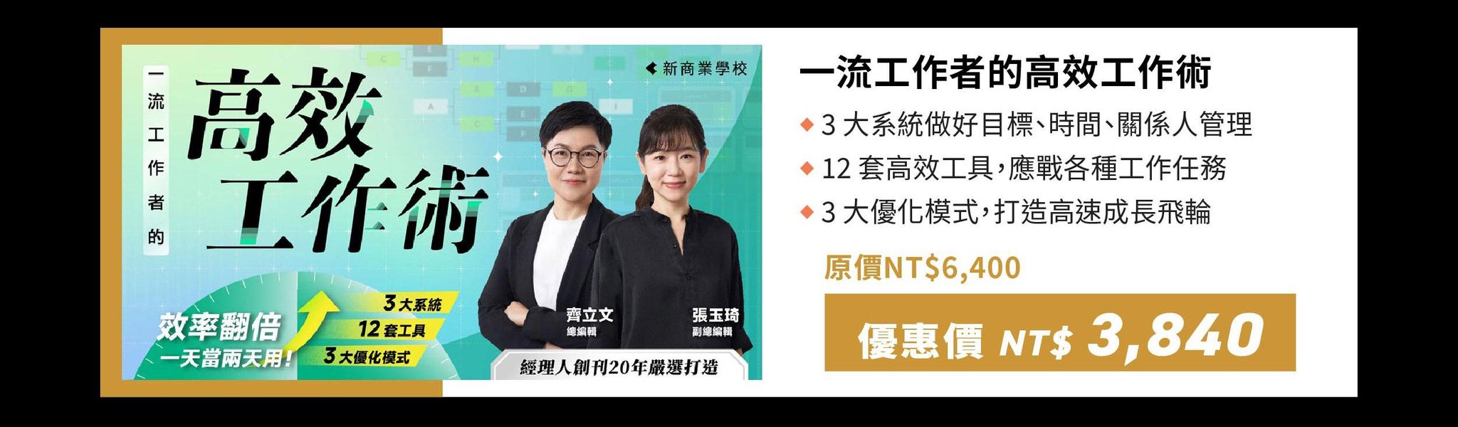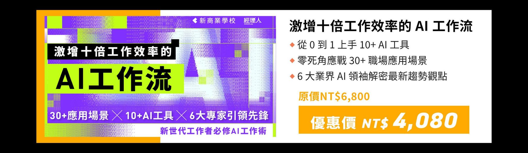 注意事項: ・ 活動案型於訂購付款完成後,即可開始課程。 ・ 本活動新商業學校保留變更、修改、終止之權力,若有變更將依活動頁公告為準。 ・ 如有任何問題請來信新商業學校 online-course@bnext.com.tw