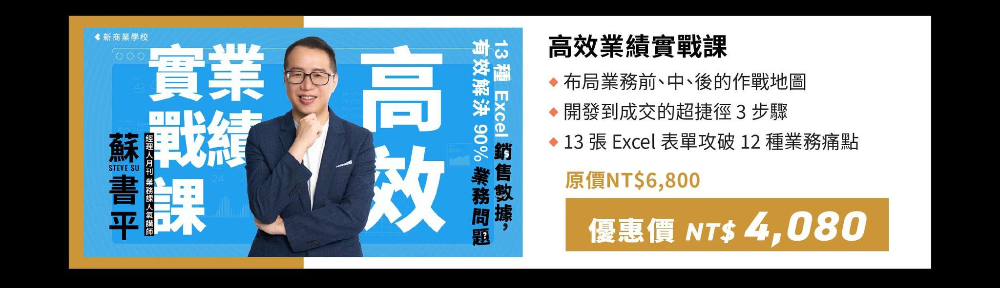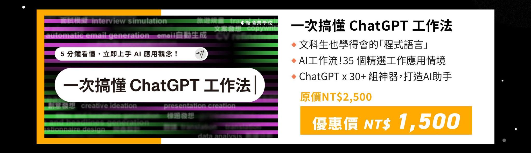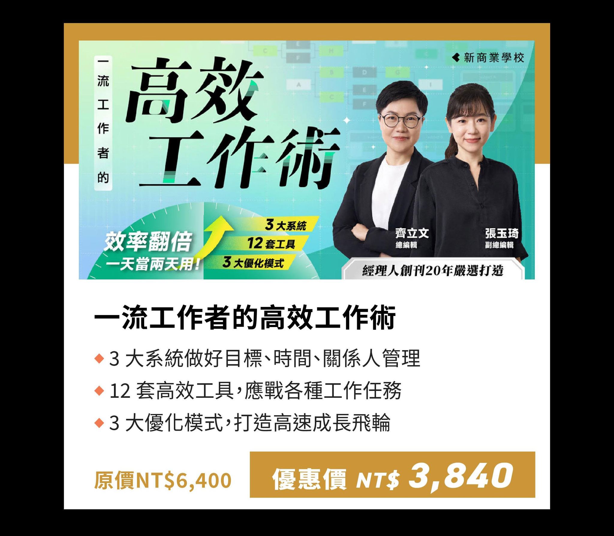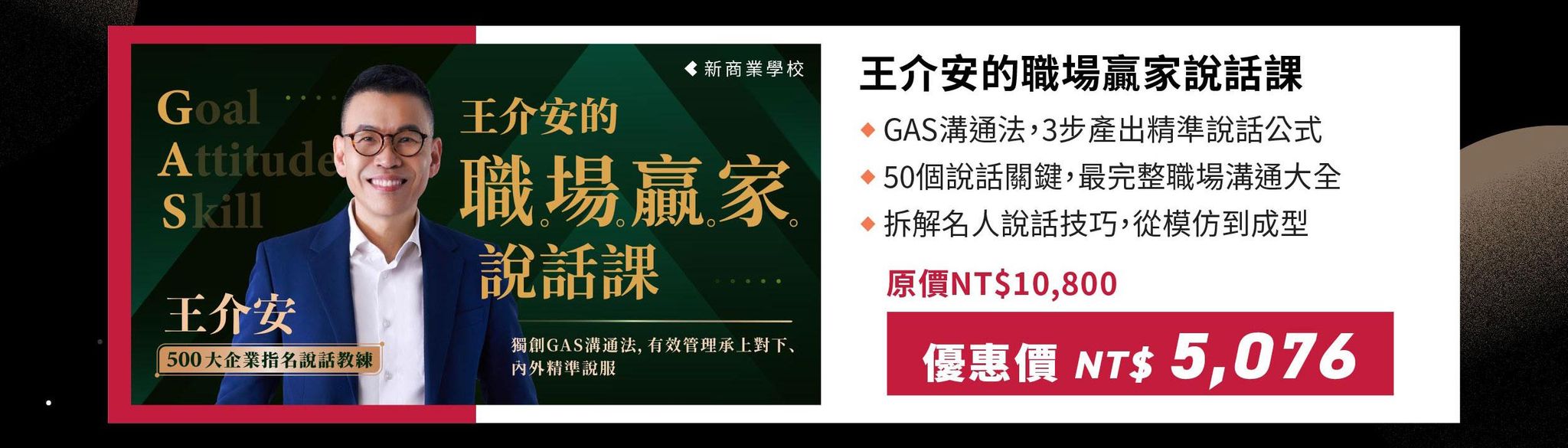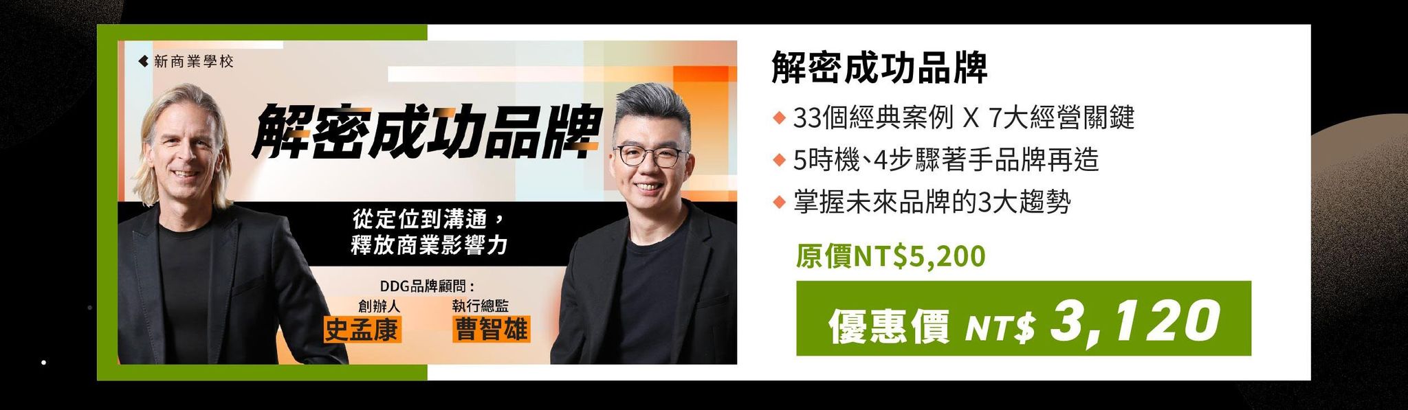 注意事項: ・ 活動案型於訂購付款完成後,即可開始課程。 ・ 本活動新商業學校保留變更、修改、終止之權力,若有變更將依活動頁公告為準。 ・ 如有任何問題請來信新商業學校 online-course@bnext.com.tw