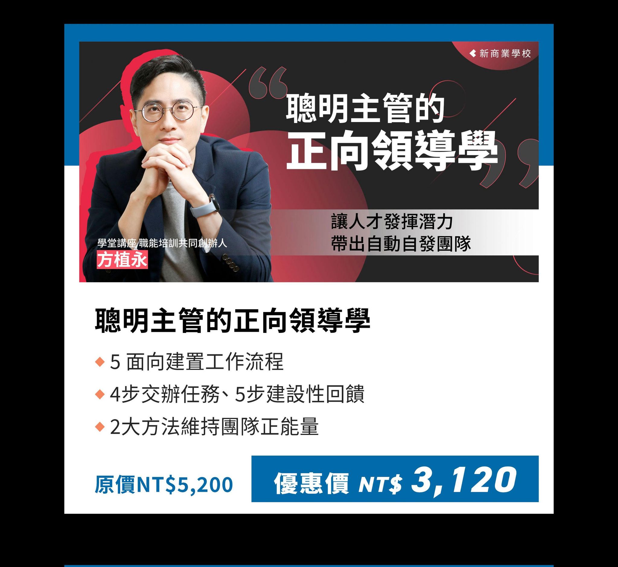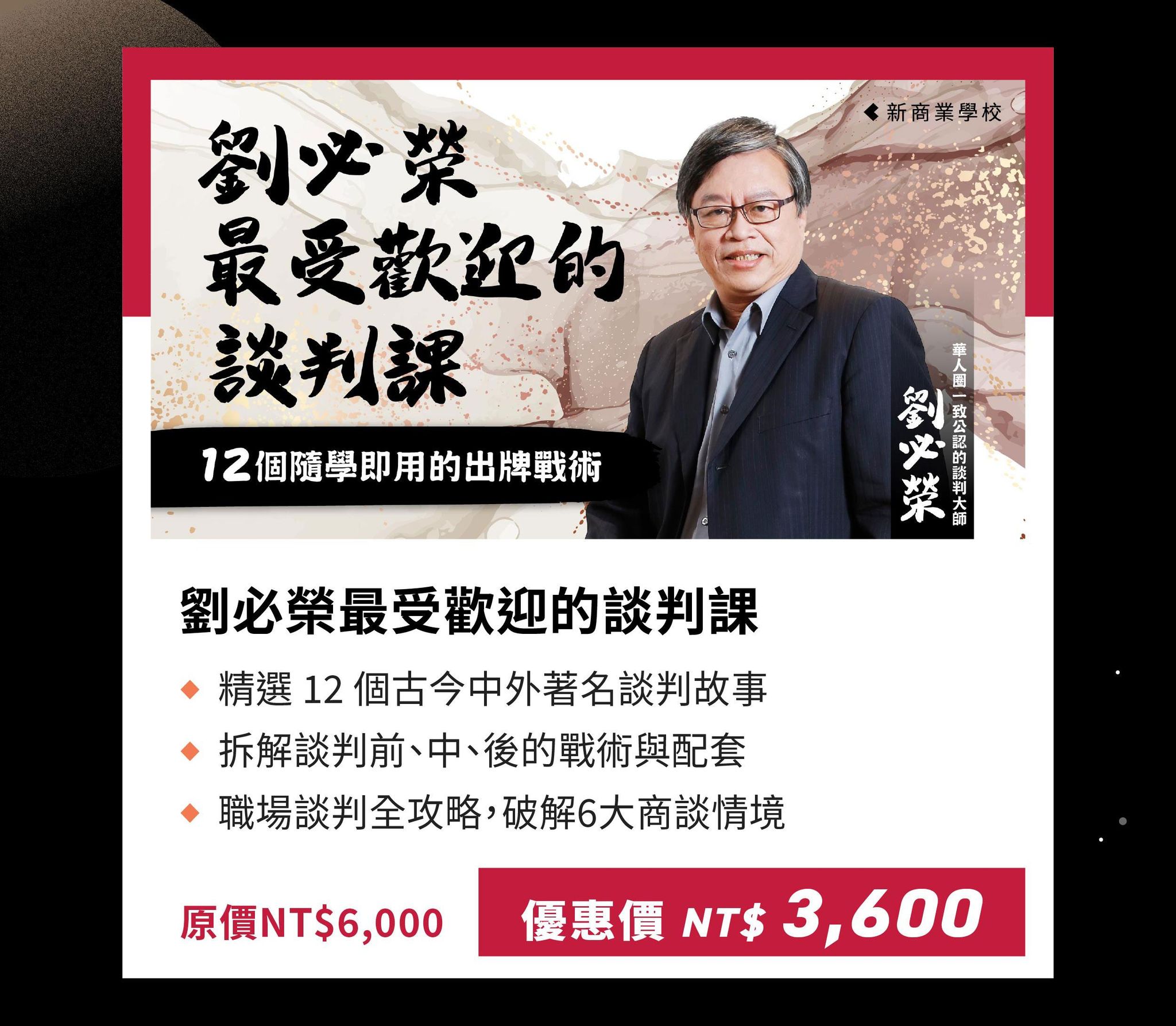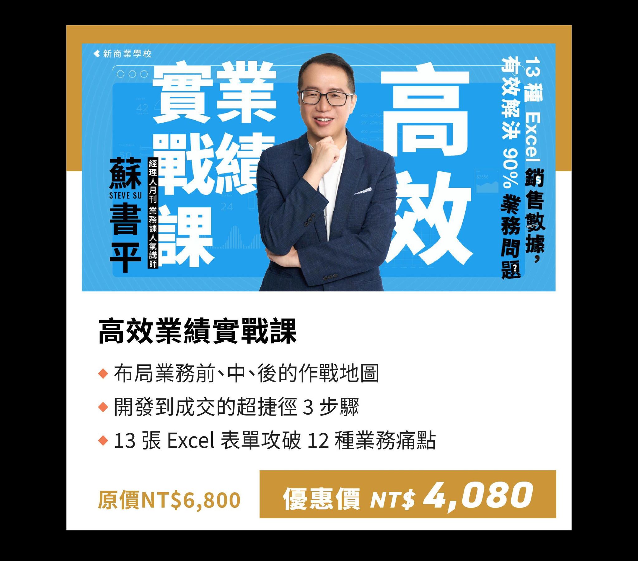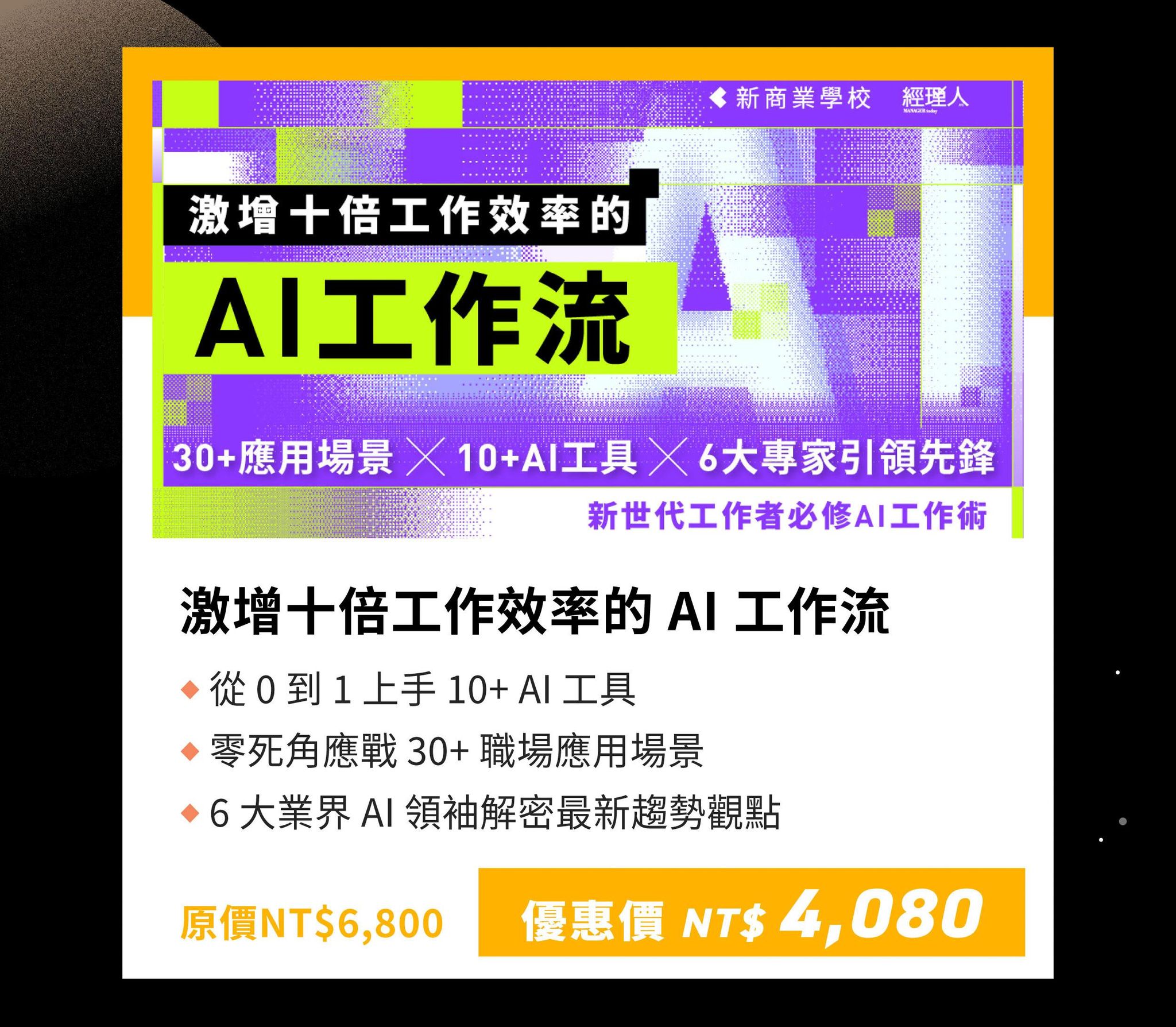 注意事項: ・ 活動案型於訂購付款完成後,即可開始課程。 ・ 本活動新商業學校保留變更、修改、終止之權力,若有變更將依活動頁公告為準。 ・ 如有任何問題請來信新商業學校 online-course@bnext.com.tw