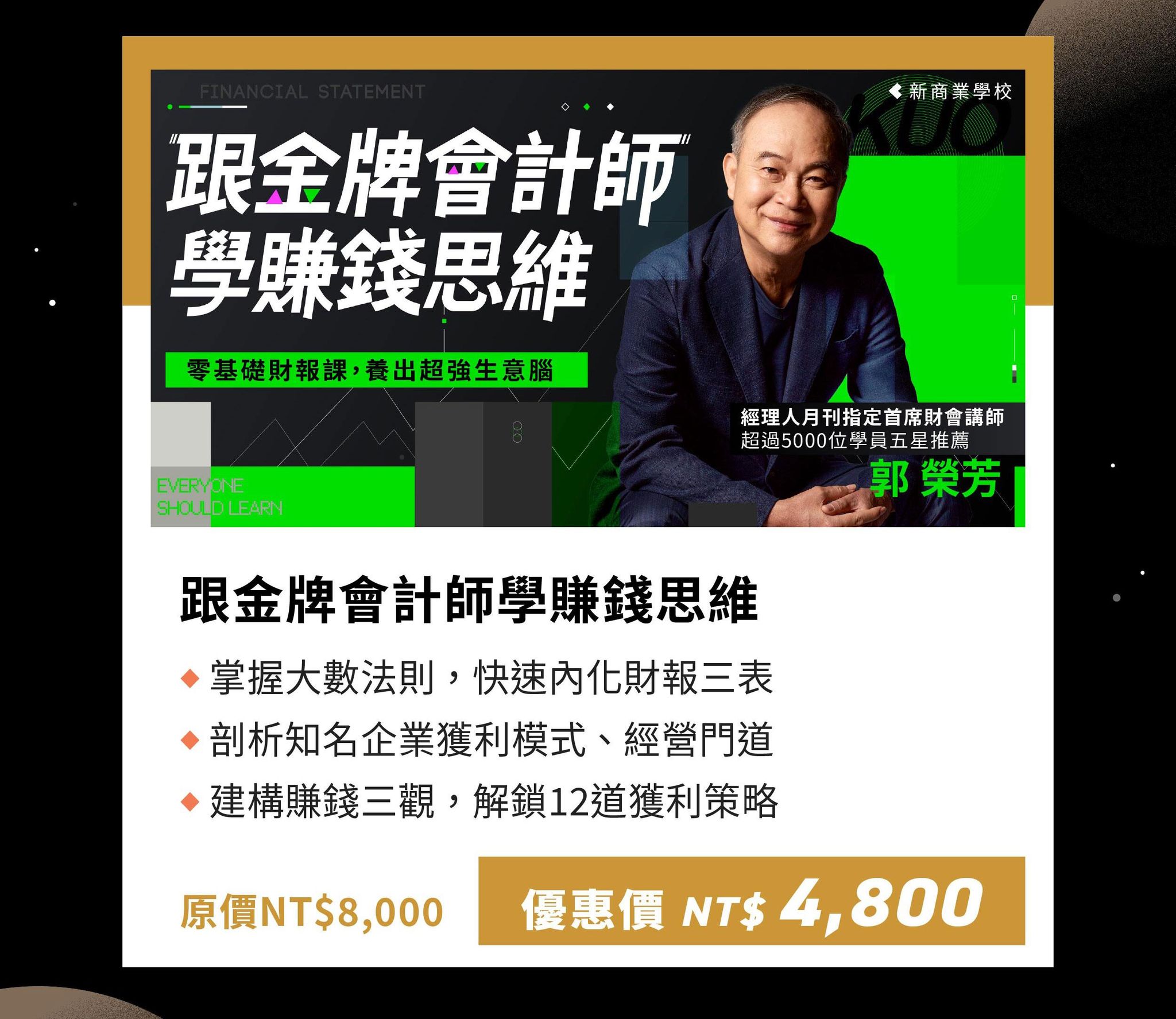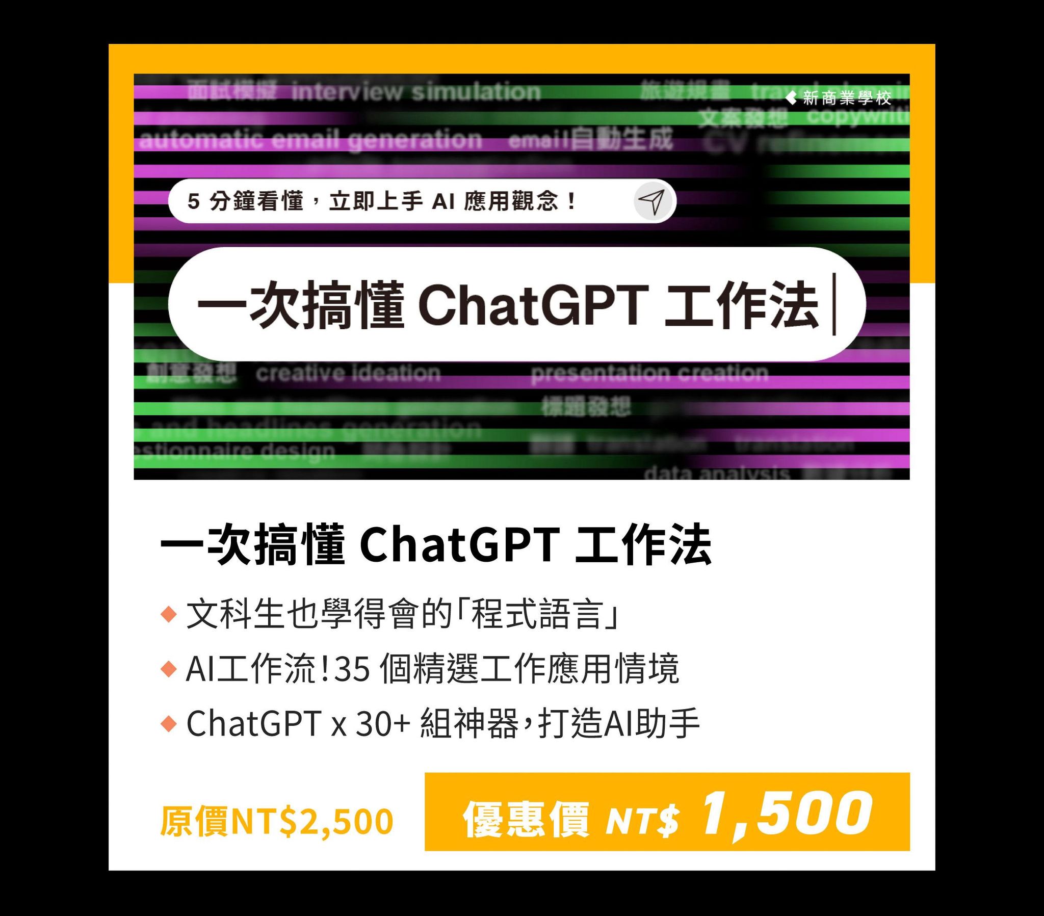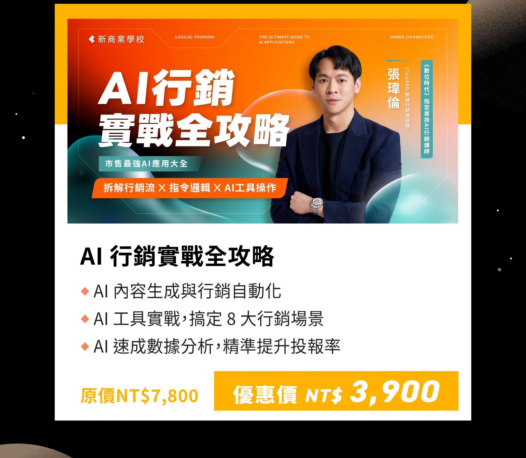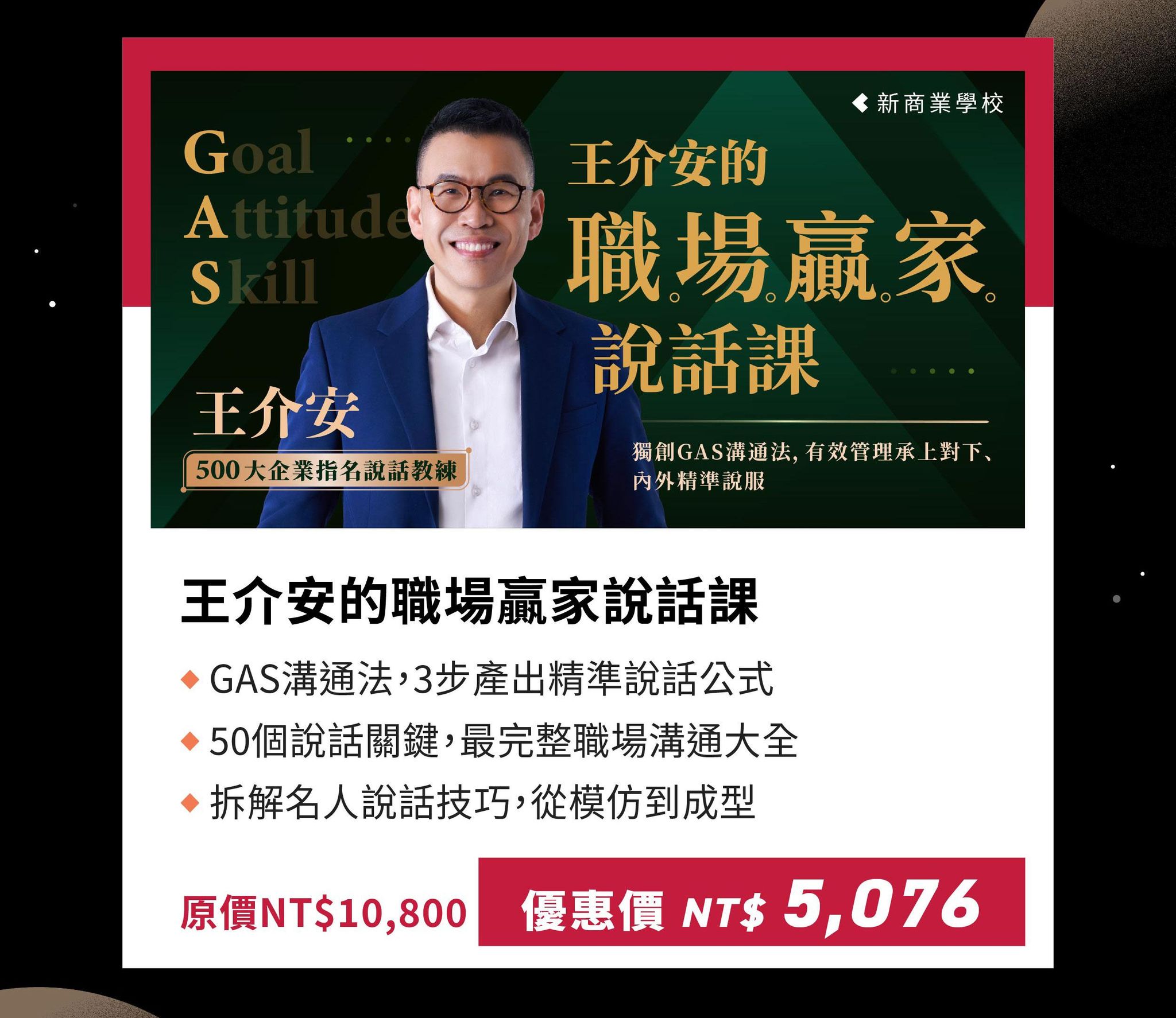 注意事項: ・ 活動案型於訂購付款完成後,即可開始課程。 ・ 本活動新商業學校保留變更、修改、終止之權力,若有變更將依活動頁公告為準。 ・ 如有任何問題請來信新商業學校 online-course@bnext.com.tw