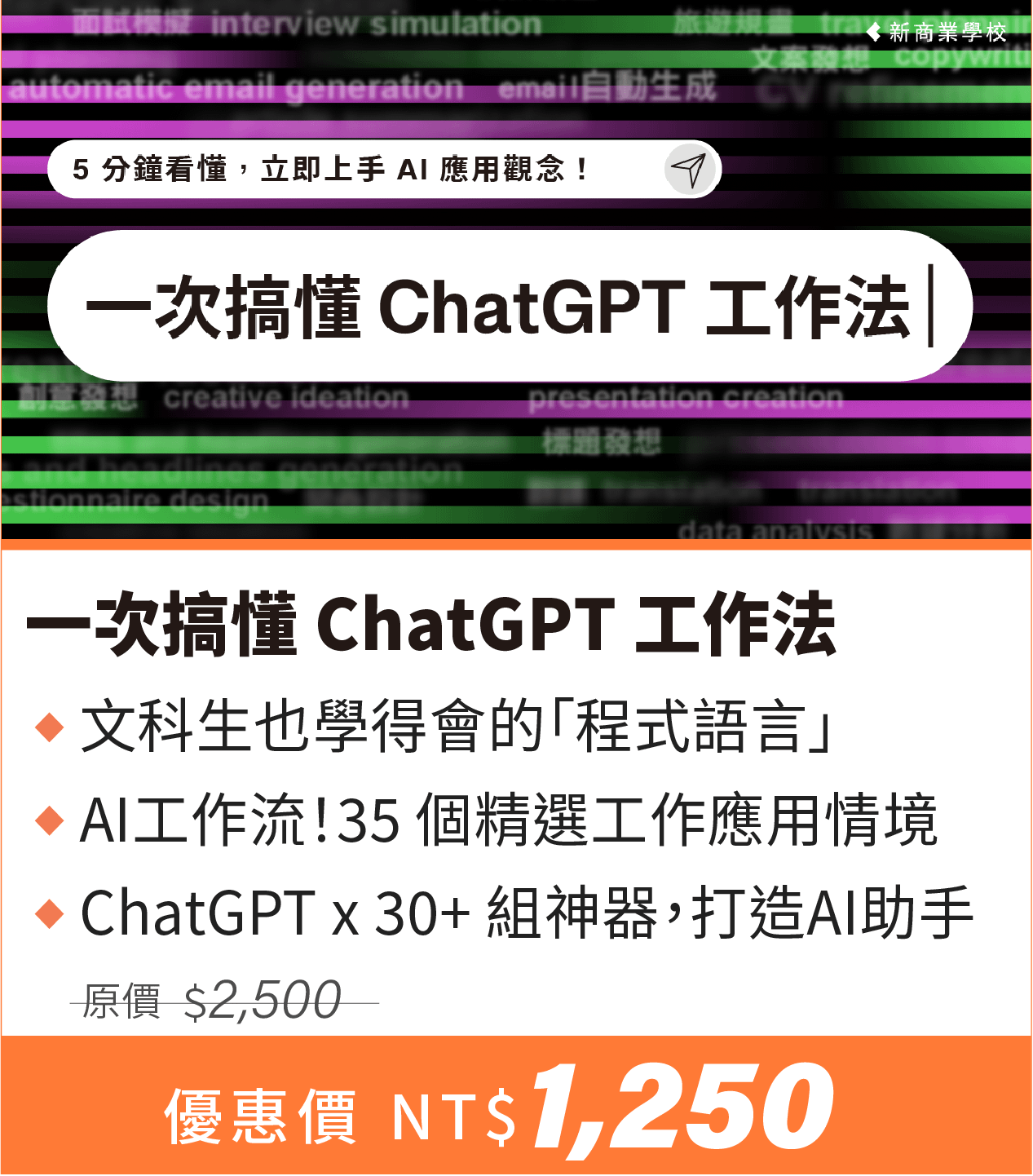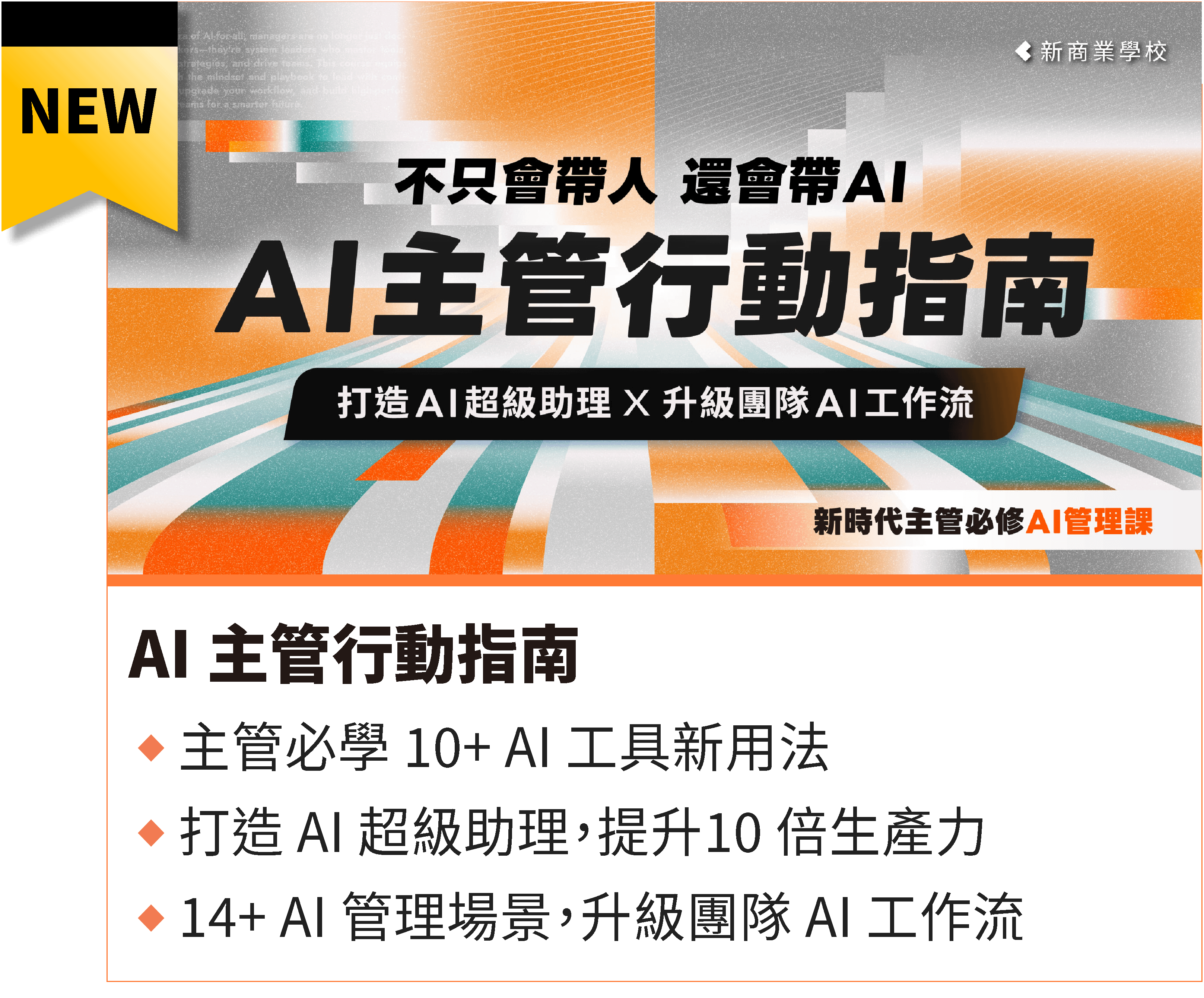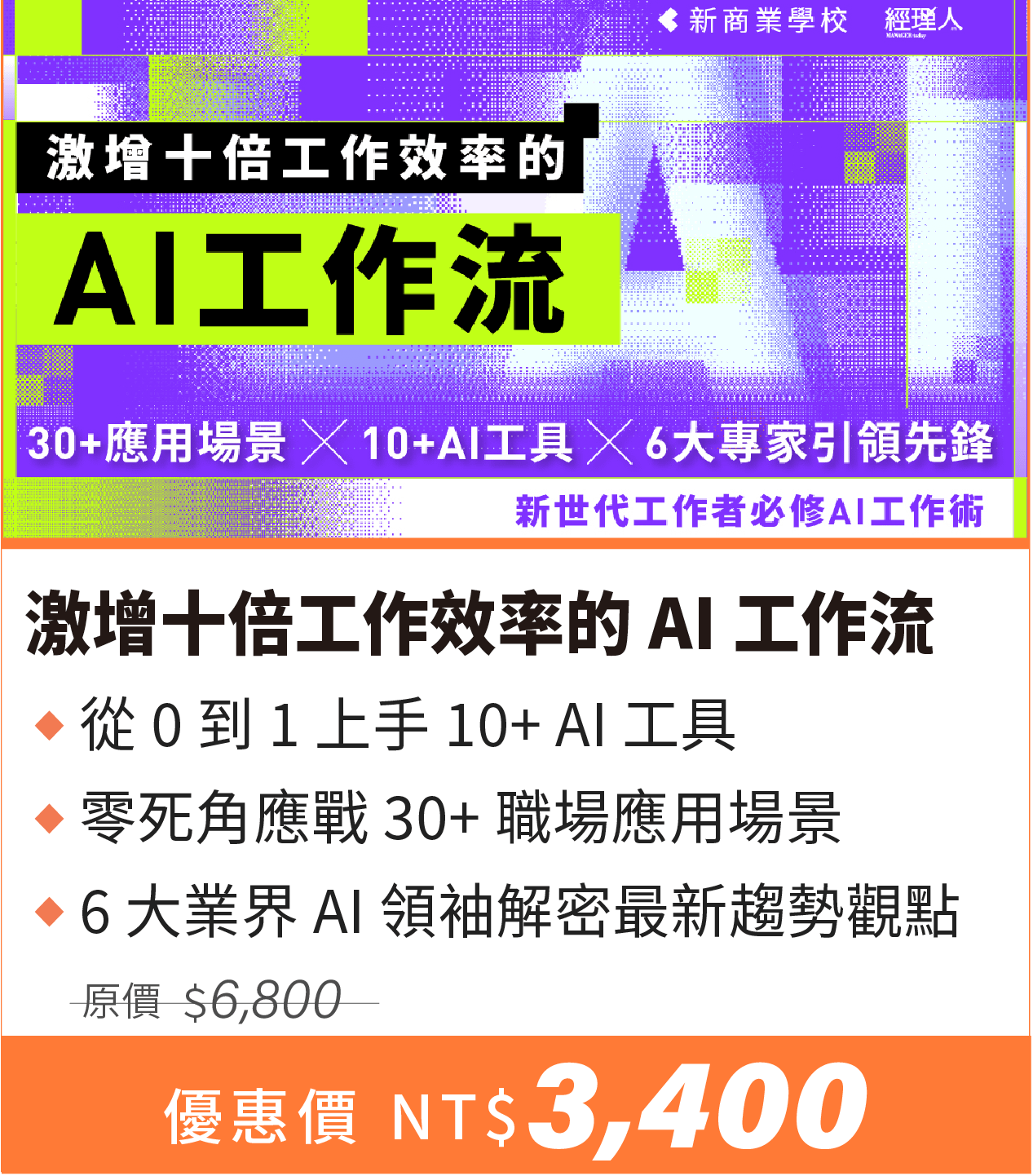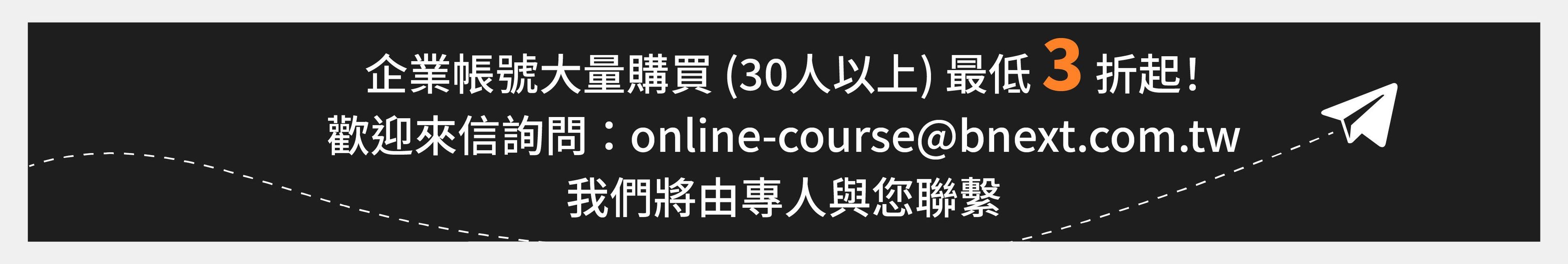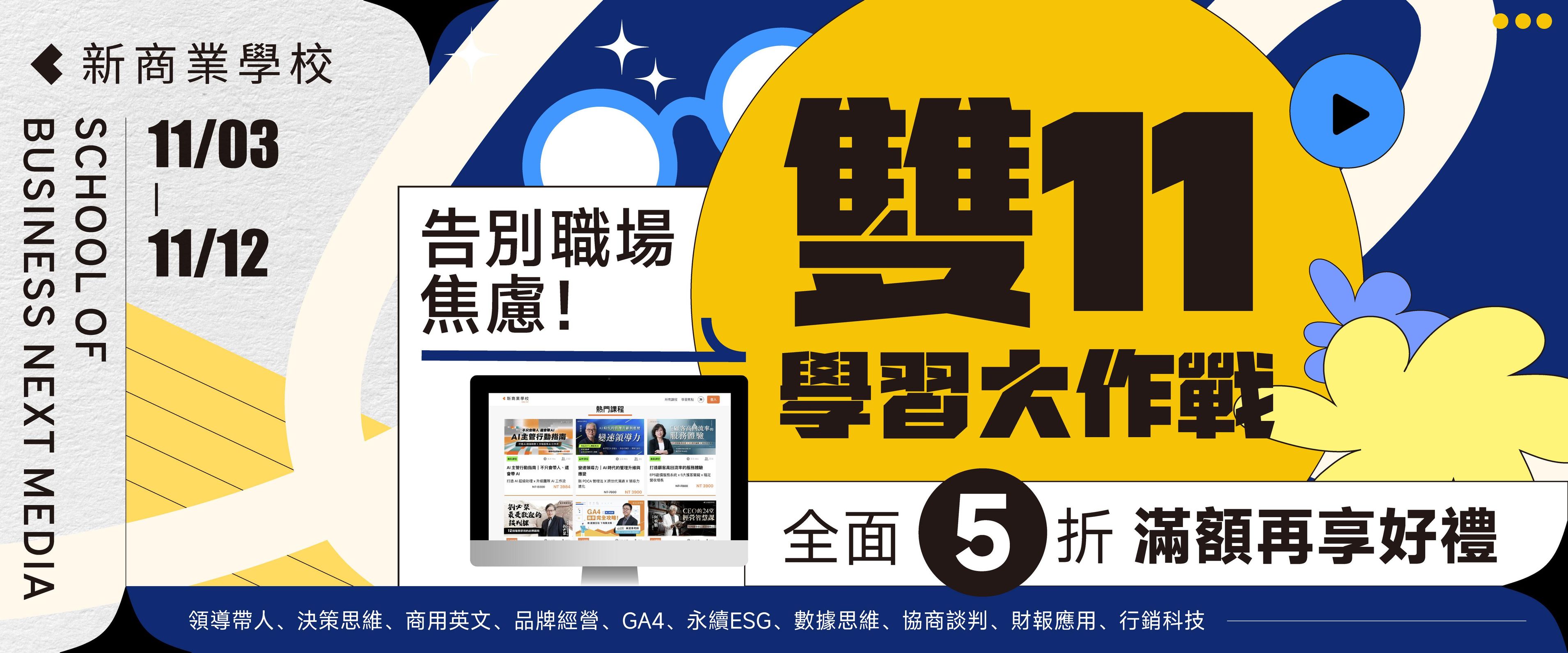 注意事項: ・ 活動期間為2025/11/3 (一) 至 2025/11/12 (四) 23:59 止。 ・ 活動案型於訂購付款完成後,即可開始課程。 ・ 本活動新商業學校保留變更、修改、終止之權力,若有變更將依活動頁公告為準。 ・ 如有任何問題請來信新商業學校 online-course@bnext.com.tw