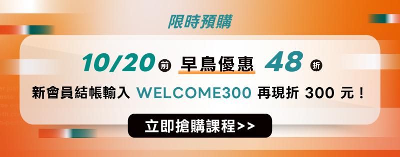 🔺不限時間重複觀看 🔺10/28 (四) 中午 12:00 正式開課 🔺信用卡刷卡可選擇分期 (三期、六期) 零利率,分期銀行僅限:玉山、台新銀行