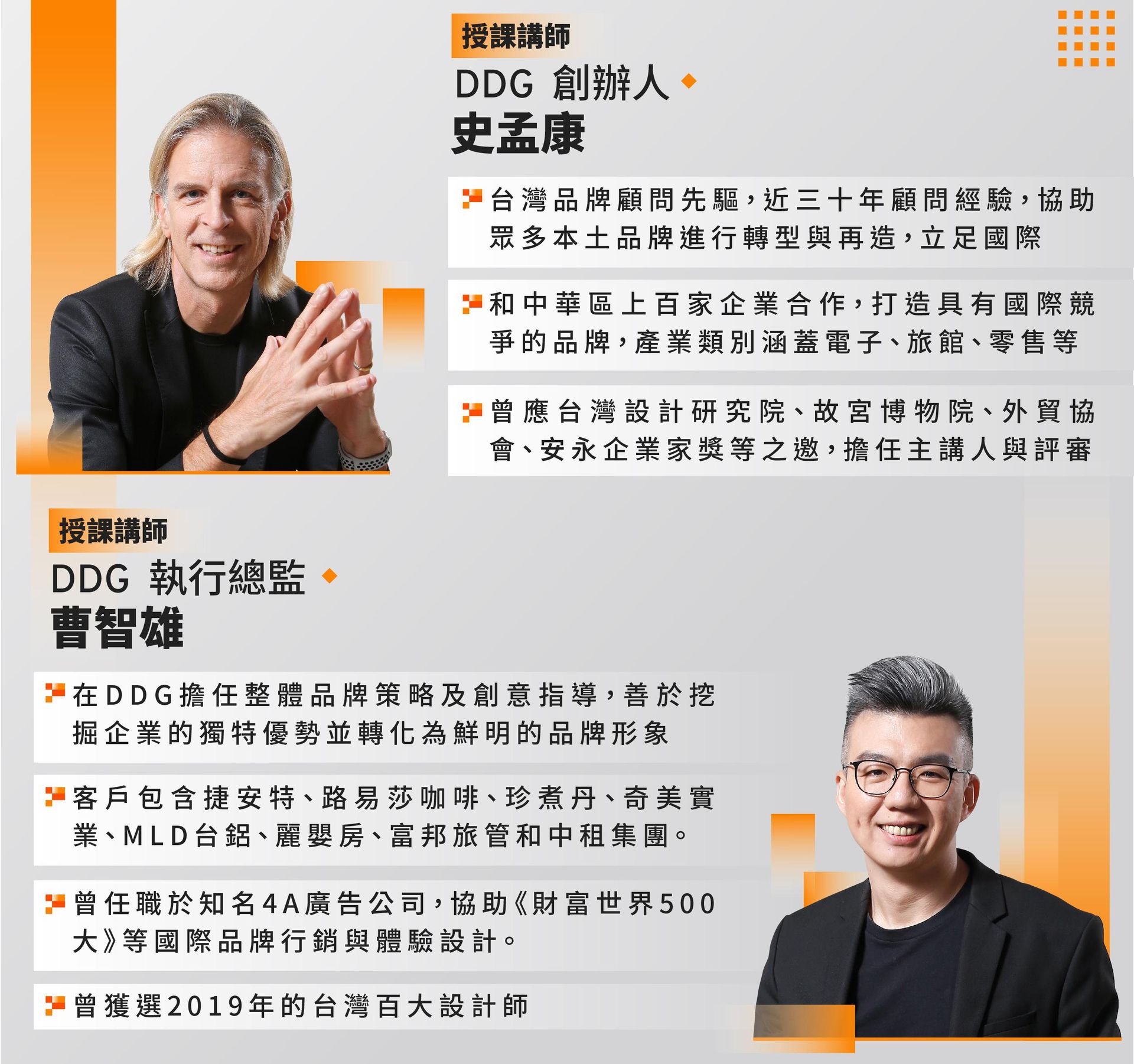 這堂課,將由協助過捷安特、BenQ、路易莎,以及奇美實業、中鼎集團等數百個品牌提升影響力的策略顧問公司——DDG,公開近三十年的品牌顧問經驗,收斂成120分鐘的精華課程,首次以影音形式,完整傳授品牌成功的秘訣及關鍵心法。DDG 創辦人 Mark 全程流利中文授課!