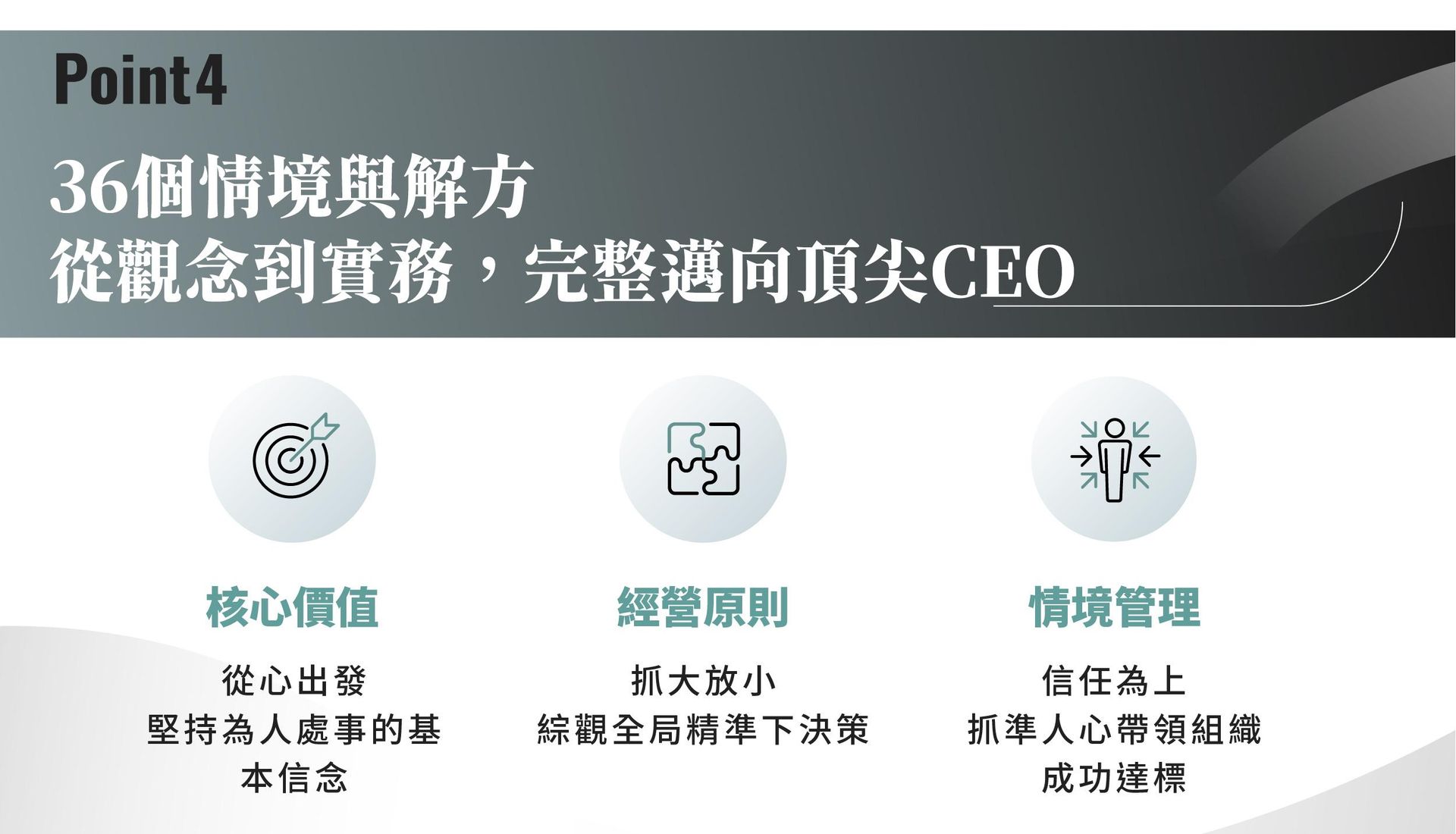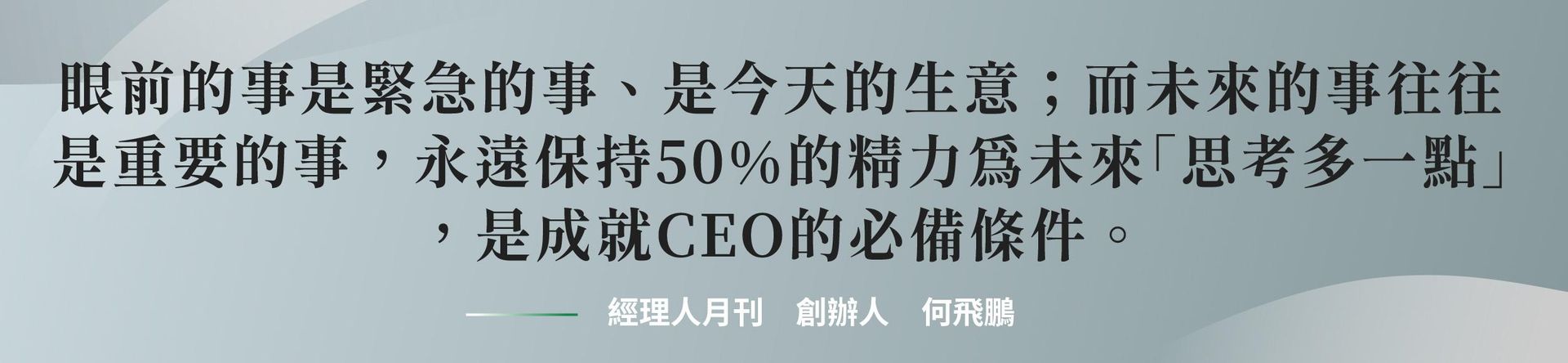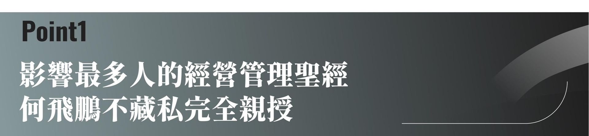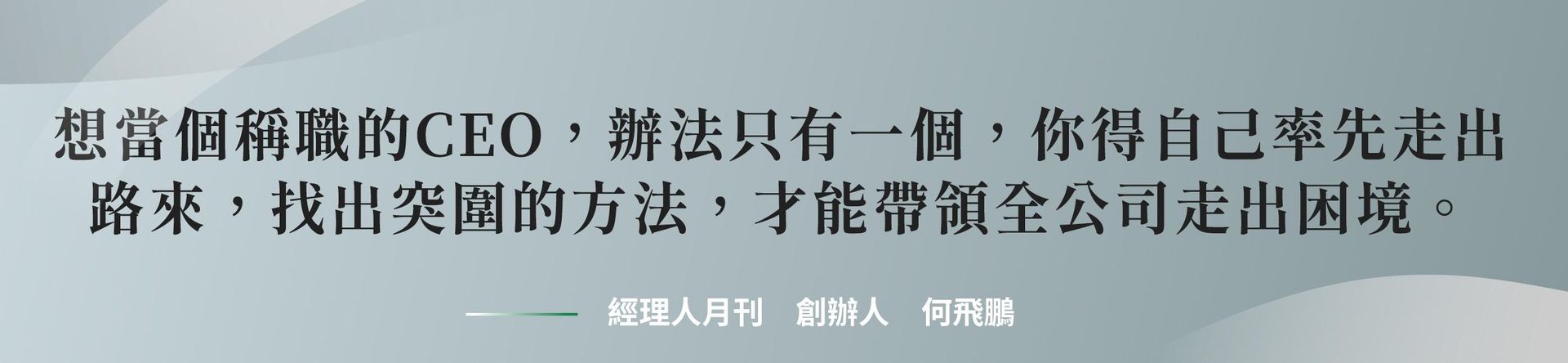這堂課收斂何飛鵬最完整的獨到管理智慧,透過「智」理名言,協助 CEO 們精進領導的心法與技法,大幅提高經營管理的「勝率」,成就自我邁向超凡 CEO 。
