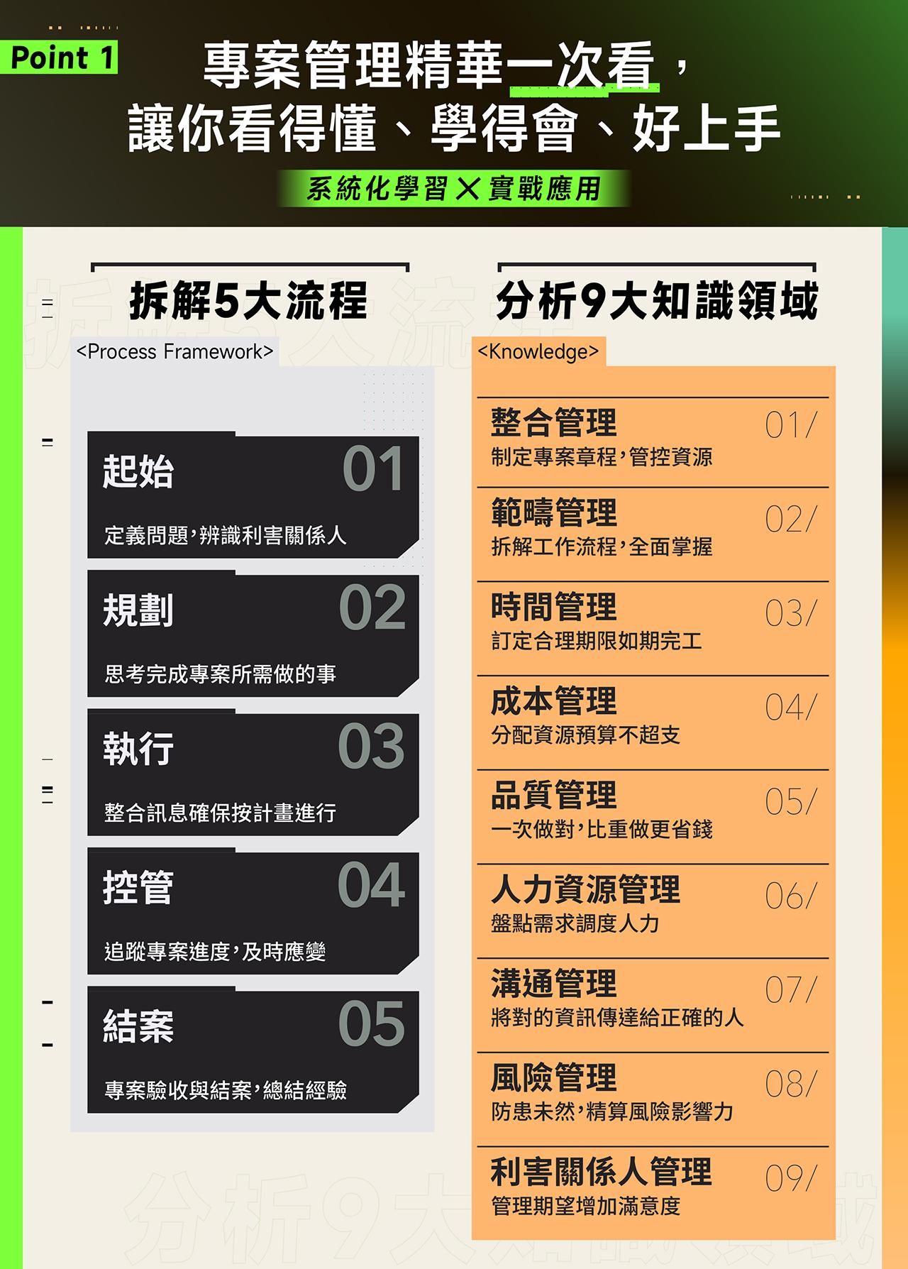 拆解 5 流程X分析 9 知識領域X圖解 10 種專案表格